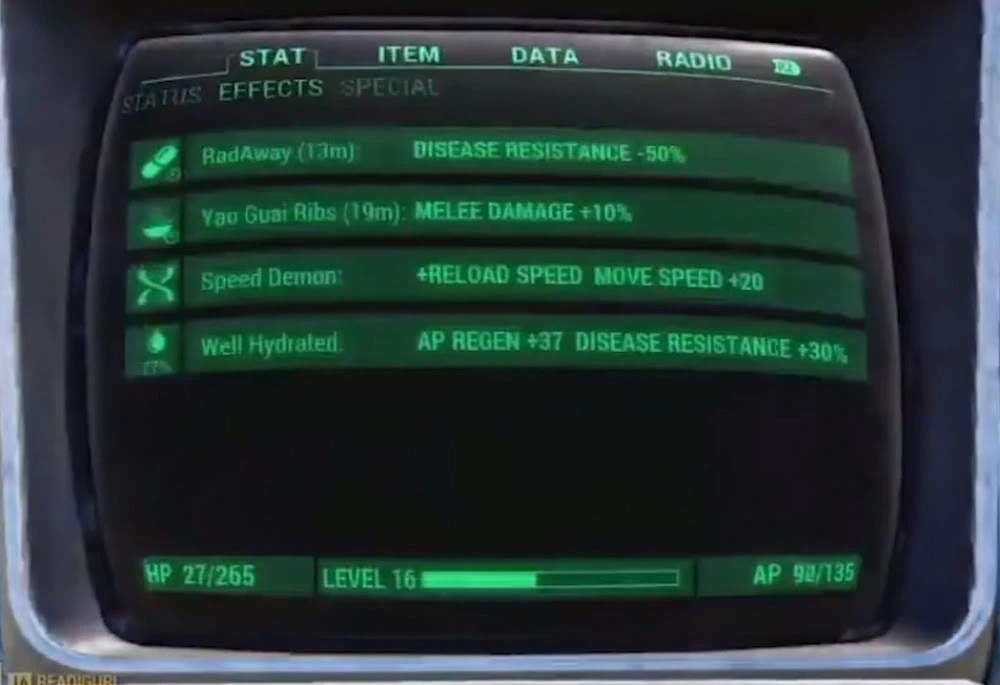 Эффекты мутаций прописаны в меню эффектов в Пип-бое игрока