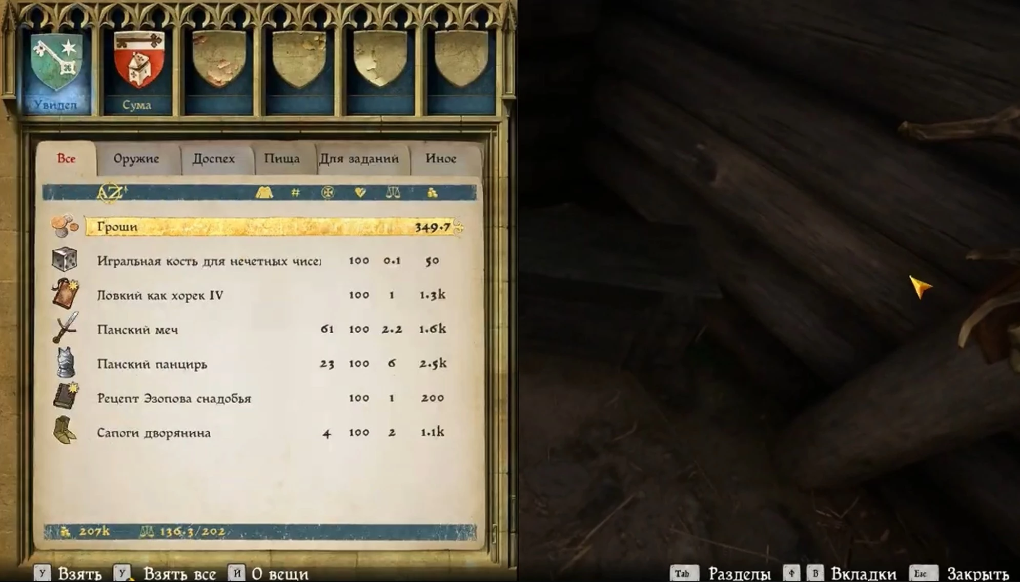 В качестве компенсации за моральный вред и потраченное время вы получите около 350 грошей, очень полезные игровые кости для чисел, книга "Ловкий как хорек IV", меч дворянина, доспехи аристократа, рецепт снадобья Эзопа и сапоги для знатного человека.