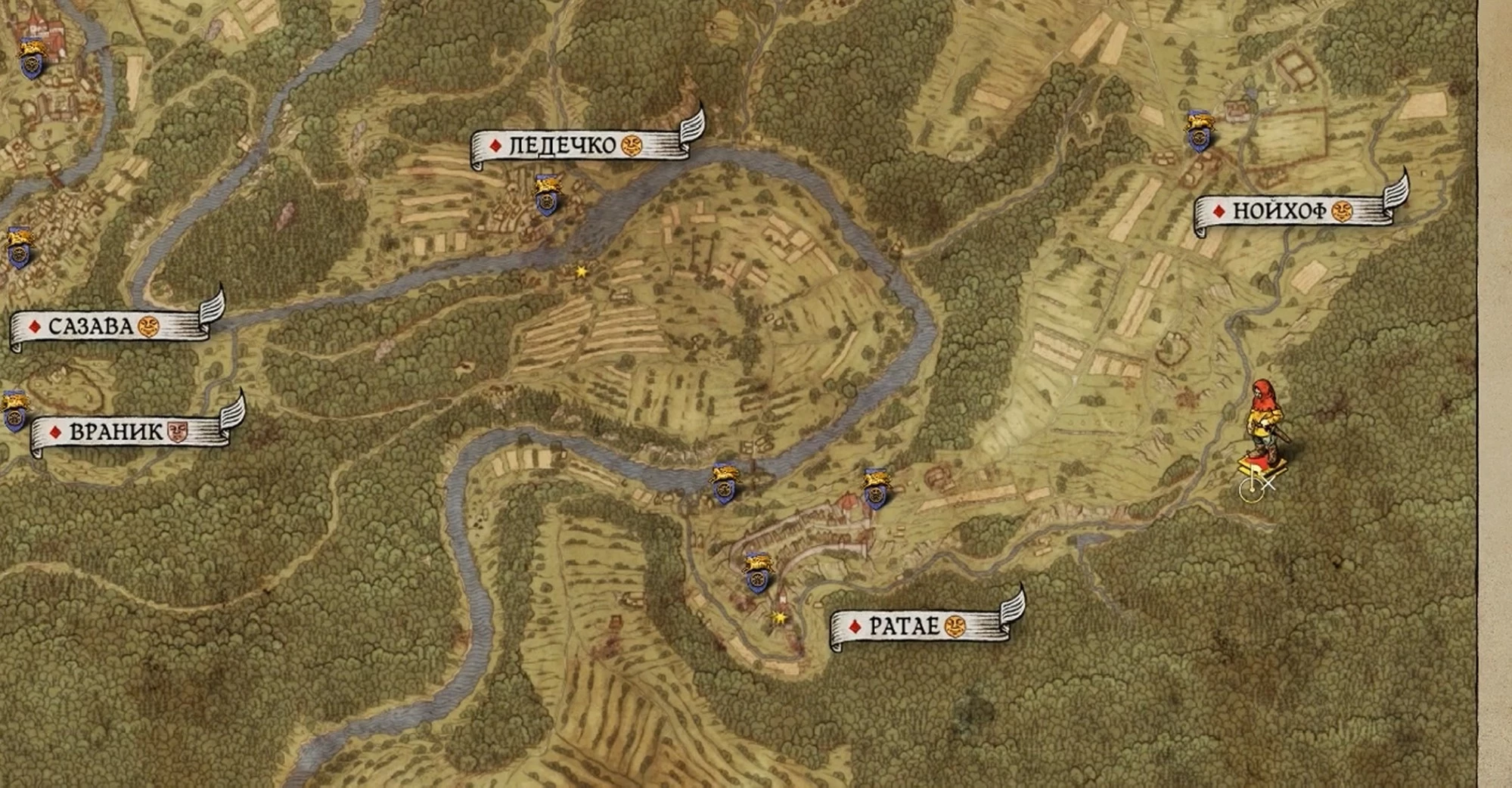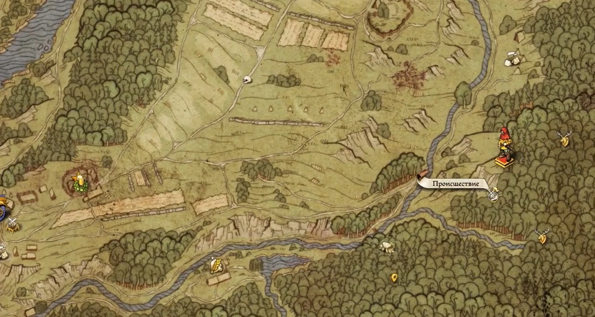 К сожалению, благодаря уникальному стилю карт в игре, оформленных как средневековые иллюстрации, территориальные пропорции искажаются, что делает поиски довольно сложными.