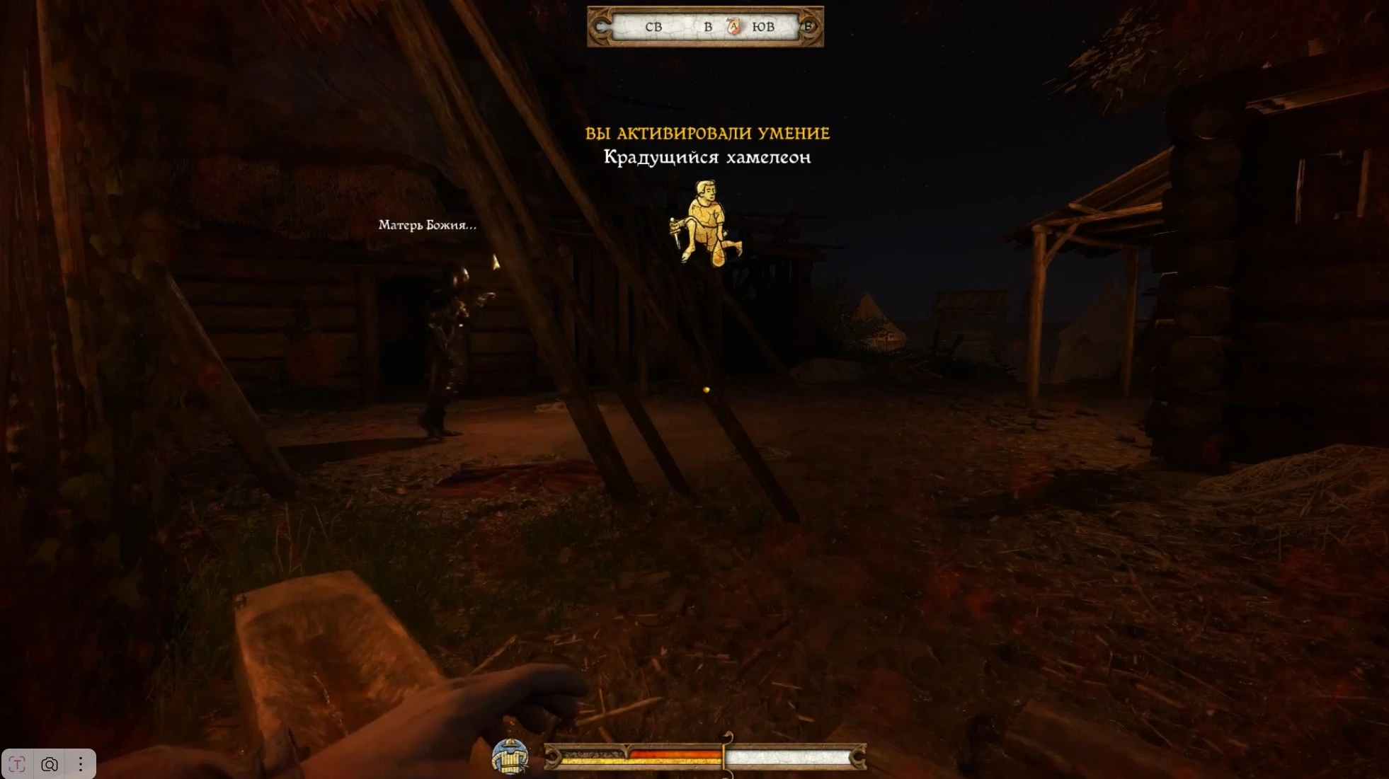 Когда стражник остановится возле сарая, подкрадитесь к нему сзади и устраните, не привлекая внимание. Спрячьте тело в сарае и продолжайте к запертой двери напротив. Взломать её будет несложно, а вот с замком на сундуке, где хранятся ваши вещи, задача станет более сложной.