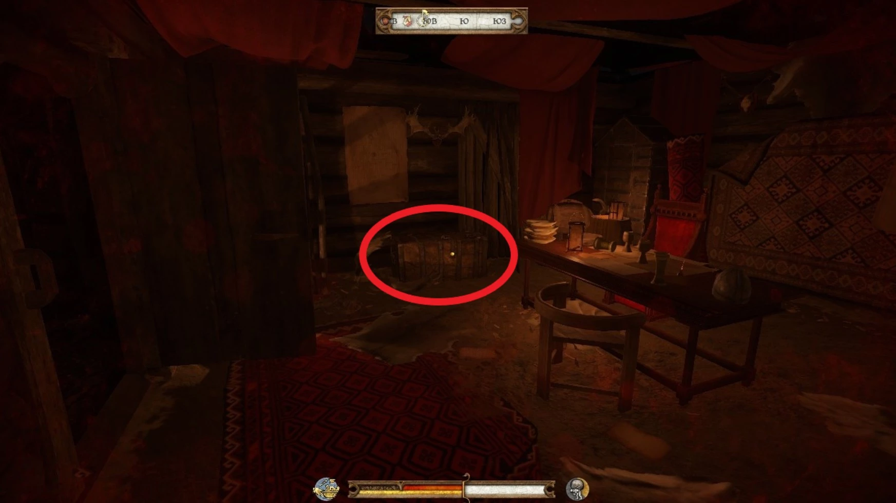 Искомый вами сундук расположен слева от входной двери. Также существует еще один в дальнем углу комнаты, где хранится множество ценных предметов. Собрав свое снаряжение, вы сможете не только укрепить свои запасы, но и ограбить врага, что существенно ослабит их силы, и поможет вам вернуться с хорошей добычей.