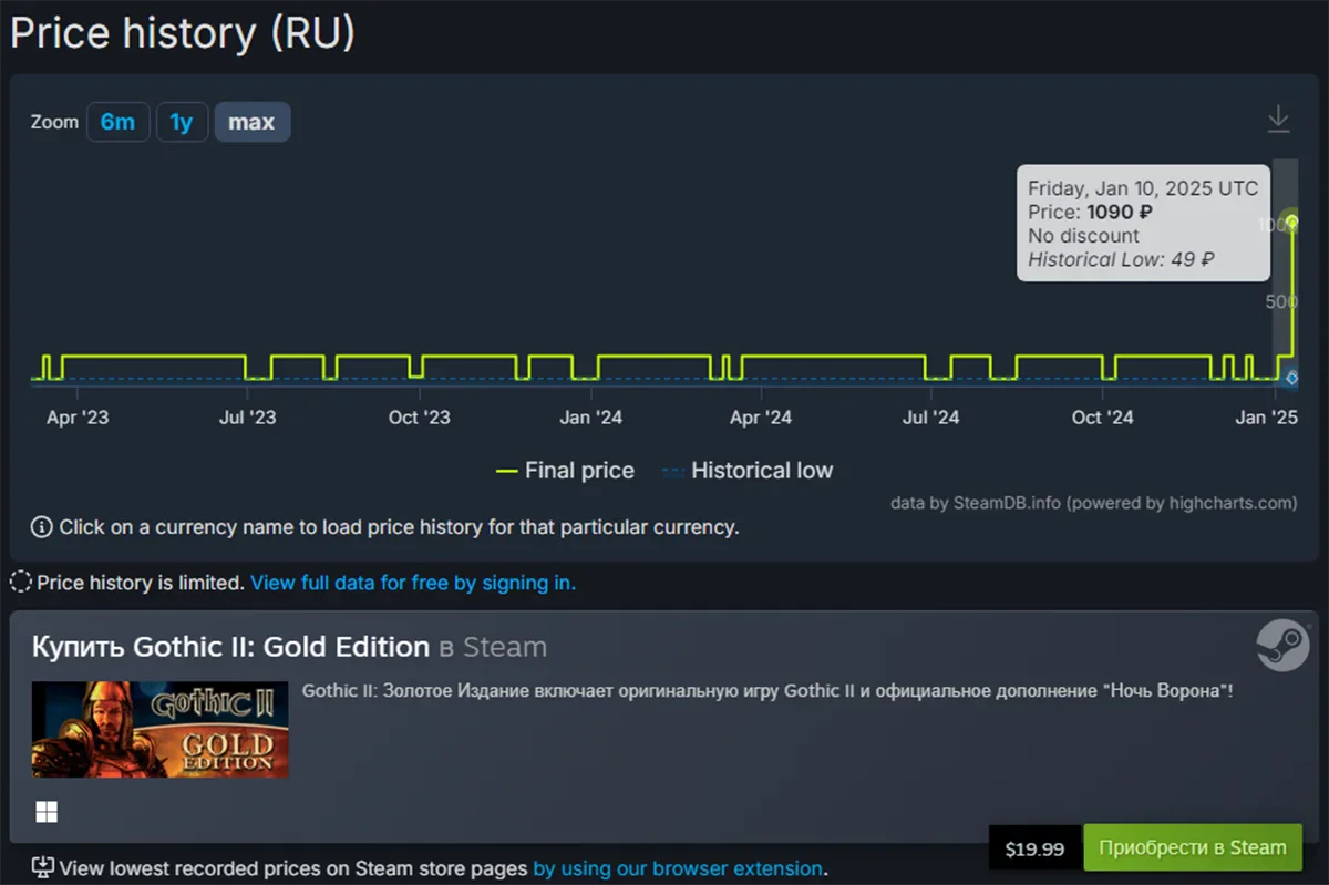 Некоторые старые игры из серии Gothic неожиданно увеличили свою стоимость в Steam по всему миру — изменения цен произошли 10 января 2025 года.