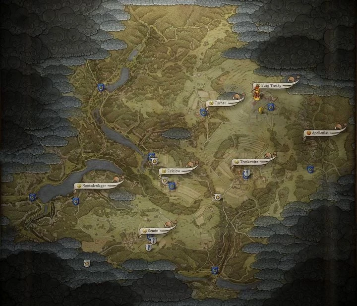 Здесь представлены живописные пейзажи, несколько поселений и замок Троски, который станет первой крупной целью главного героя, Генриха. Карта также содержит локации для выполнения побочных миссий. Предполагается, что прохождение игры займет от 60 до 120 часов.