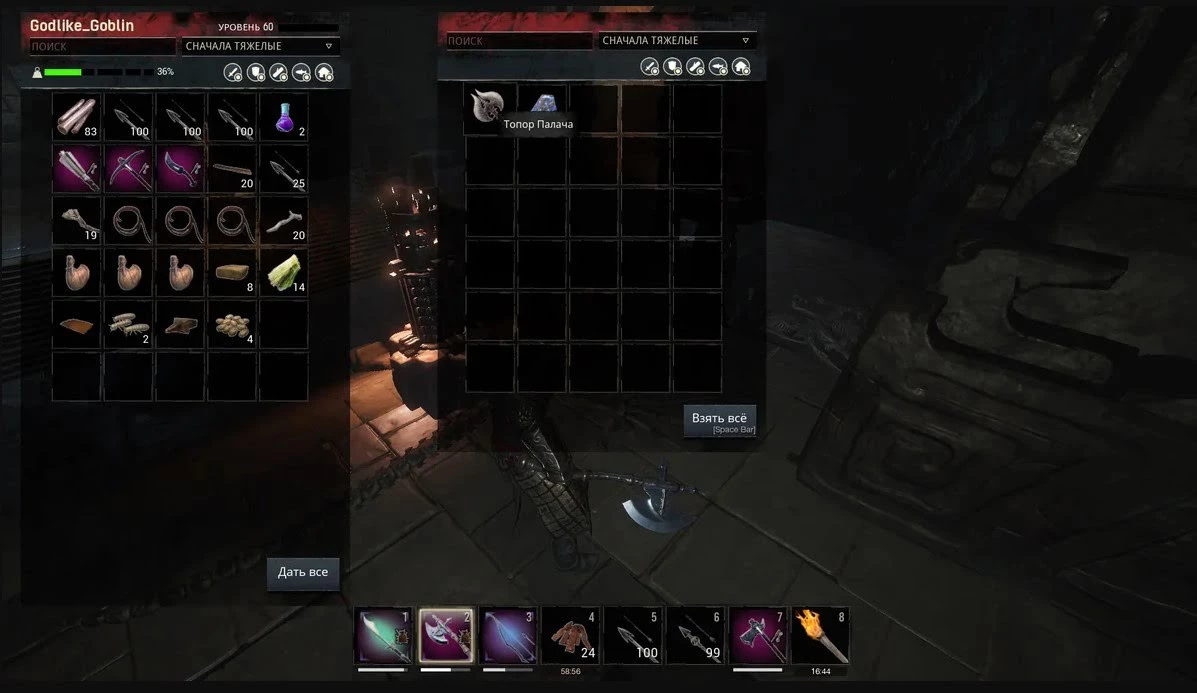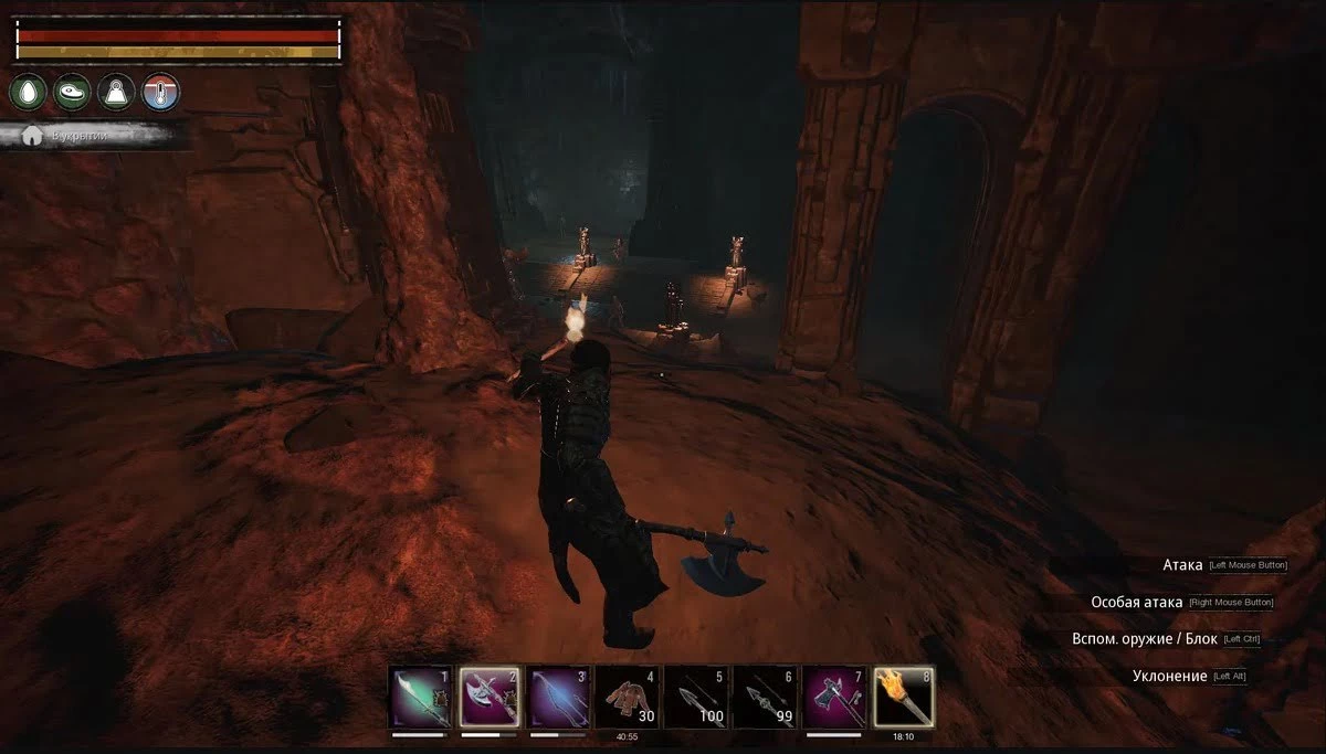 Бой с Палачом, не доставит особых проблем, особенно при наличии даже слабого раба. Как и другие скелеты-змеелюдов, Палач во время атак накладывает эффекты кровотечения. Но если вы заявились к нему не в одиночку, это не станет большой проблемой. Пул добычи с этого босса весьма скуден. Во-первых, как и с боссов Безымянного Города, вы гарантированно получите один Осколок Силы. Во-вторых, кроме Осколка у вас будет возможность заработать один из следующих легендарных артефактов: "Топор Палача" и меч "Клинок Палача", имеющие эффект Казнь. Оружие, наделенное этим эффектом мгновенно уничтожит любого противника, получившего достаточно значительный урон. И "Капюшон Палача"- тяжелый шлем дающий +3 к силе.