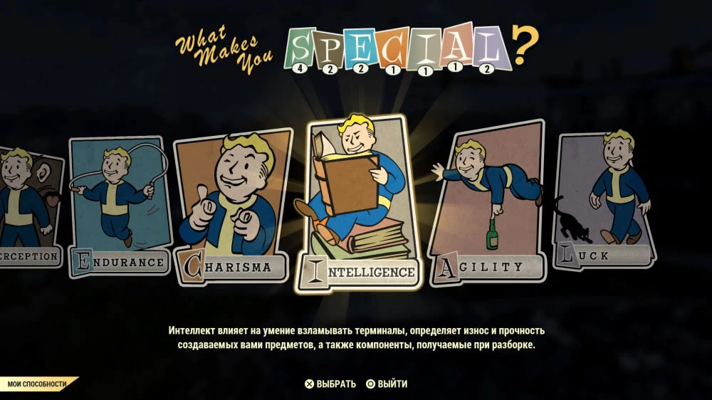 Показатели силы, восприятия, выносливости, харизмы, интеллекта, ловкости и удачи — это основные характеристики, которые влияют на работу ваших перков. На этот раз вы начинаете с 1 балла в каждом, а не создаете своего персонажа с определенным набором. Всякий раз, когда вы повышаете уровень, вы сможете увеличить один стат на единицу, максимум до 15 очков. Очки нельзя получать после достижения 50-го уровня, поэтому разумно их тратите.