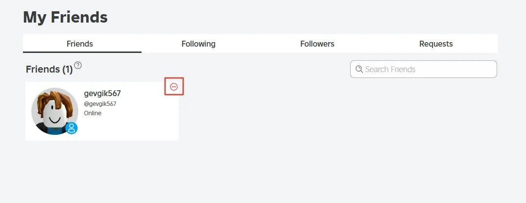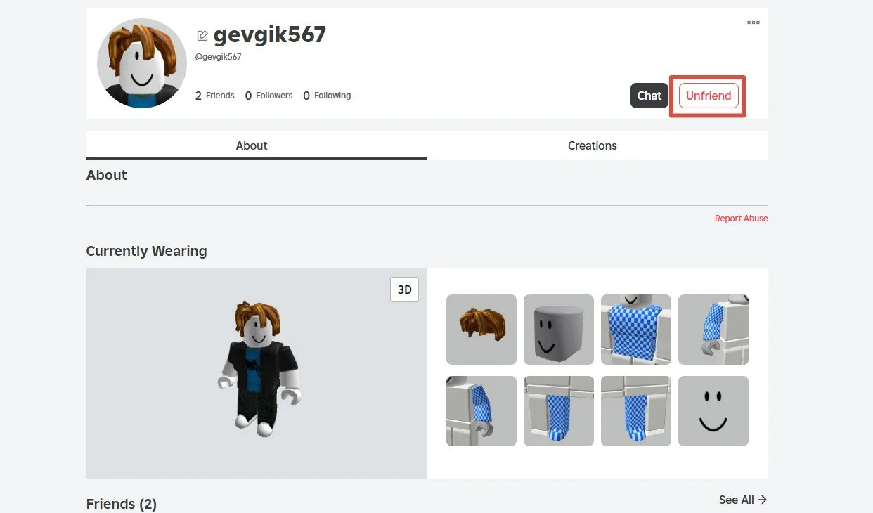 Войдите в свою учетную запись Roblox и перейдите к списку друзей. Щелкните правой кнопкой мыши на профиле друга и выберите «Открыть ссылку в новой вкладке». Повторите это для других игроков. После этого в каждой открытой вкладке нажмите «Не друзья» рядом с чатом.