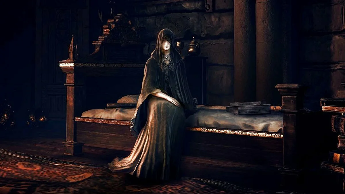 Фия, Утешительница павших героев, занимает полутемную комнату в Крепости Круглого стола, где она укрыта в темно-зеленом одеянии и сидит на постели. Она впервые встречается с игроком, предлагая свои «объятия» всем Погасшим, даруя им особое благословение, которое усиливает их способности. Однако истинные цели Фии становятся ясны позже — она стремится найти Руну Принца Смерти, чтобы осуществить свою амбициозную мечту о создании «Эпохи Сумрака». Игроку предстоит решать, поддержать ли Фию в ее смелом плане вернуть к жизни павшего принца или оставить ее мечты неосуществленными.