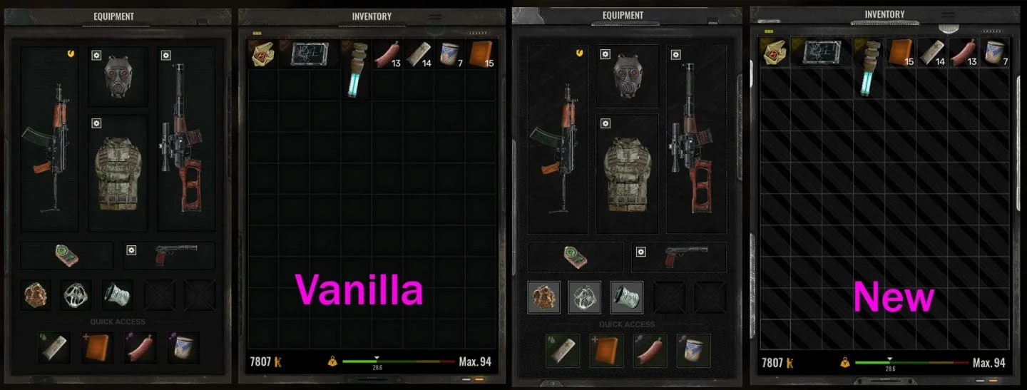 Модификация "Large Loot Inventory", разработанная KeinZantezuken, значительно увеличивает слоты инвентаря в игре. Она позволяет игрокам переносить больше предметов, включая амуницию, броню и оружие, что делает игровой процесс более удобным и приближенными к иным играм, где инвентарь не ограничен. Кроме того, мод предлагает возможность переносить энергетики по Зоне, расширяя функциональность инвентаря и позволяя игрокам более свободно управлять своими ресурсами. Подобная модификация призвана улучшить игровой опыт, минимизируя проблемы, связанные с ограниченным количеством слотов и нагруженностью инвентаря.
