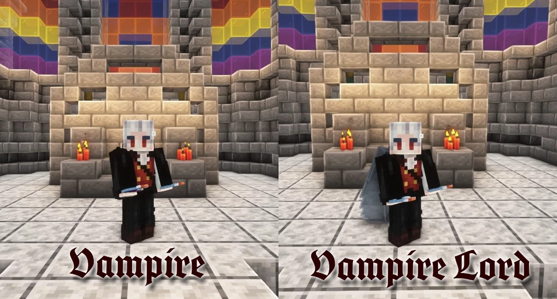 Самый масштабный мод на тему вампиров для Minecraft. Он погружает игроков в борьбу между вампирами и охотниками. Обратиться в вампира можно после укуса или инъекции вампирской крови, что даст вам силы, но также и слабости, такие как уязвимость к солнечному свету и необходимость в крови. Став вампиром, можно создавать собратов и участвовать в ритуалах для улучшения способностей, включая телепортацию и превращение в летучую мышь. Если же вам не интересна игра за вампира, можно присоединиться к сообществу охотников, улучшая свои навыки и оборудование для борьбы с вампирами.