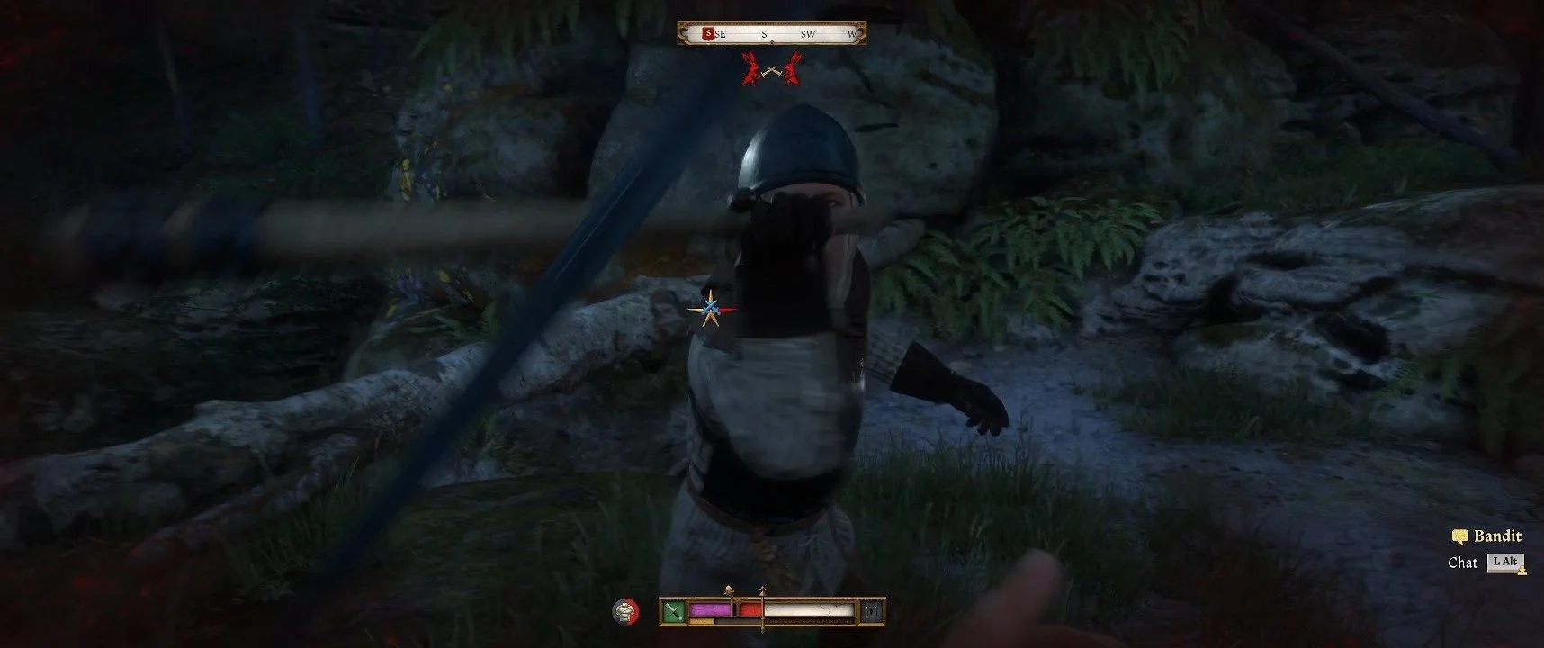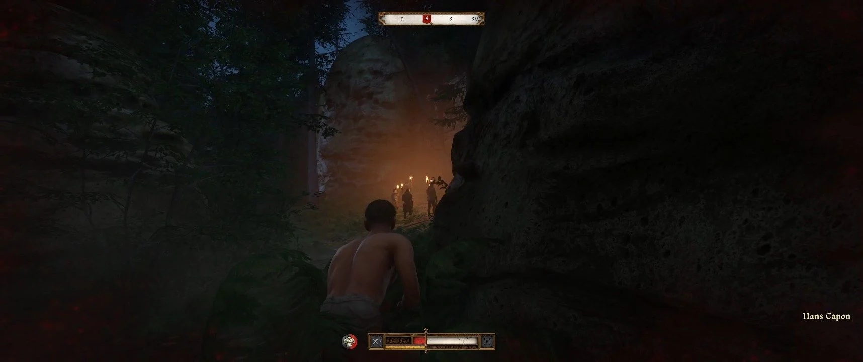 Бегите по лесу от преследователей. Следите за Гансом, прячьтесь и держитесь в тени. Двигайтесь по темным тропам, пока не достигнете холма. Вернувшись назад, встретите Ганса, помогите поднять бревно и сразитесь с бандитом. Вы не обязаны выиграть бой — исход будет неизменным.