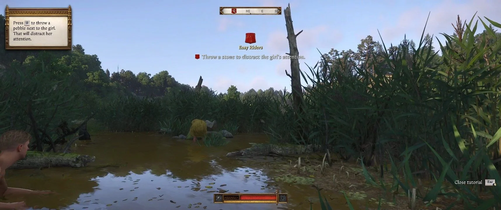 Важной частью обучения является взаимодействие с другими персонажами, включая спарринг с Гансом Капоном. Игроку предстоит продемонстрировать боевые навыки и победить его. Кроме того, обучение включает в себя элементы скрытности и выживания: персонажу необходимо будет пробраться сквозь кусты, а также уклониться от встречи с бандитами, подстерегающими в окрестностях. Этот этап, по всей видимости, призван обучить игрока ориентированию на местности и избежанию прямых столкновений.