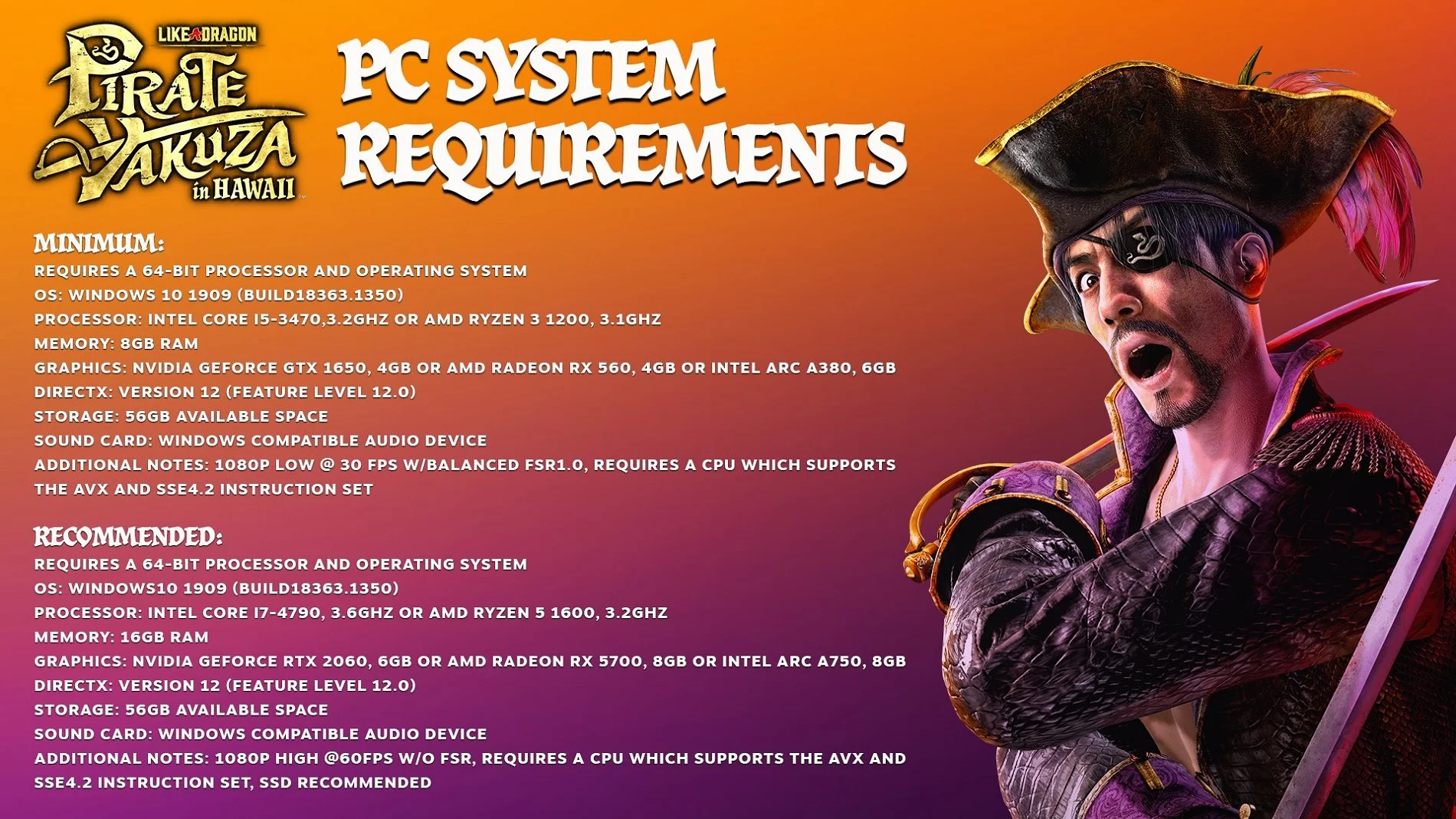 RGG Studio обновила минимальные и рекомендуемые системные требования для своего будущего приключенческого проекта Like a Dragon: Pirate Yakuza in Hawaii.