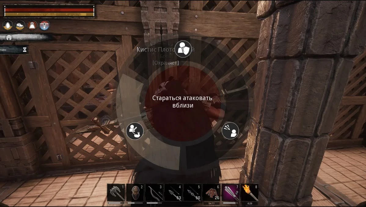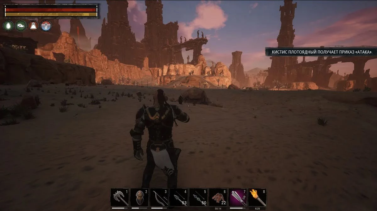 Кроме всего этого теперь в Conan Exiles появилась возможность отдавать рабам приказы непосредственно во время боя, ну или мирного путешествия. Рабу можно быстро указать куда ему идти, или же указать цель, на которую ему требуется напасть. В теории эти функции довольно удобны, как в боевых действиях, когда раба нужно заставить бить определенного врага, так и в быту, когда раб может банально заблокировать вам проход.