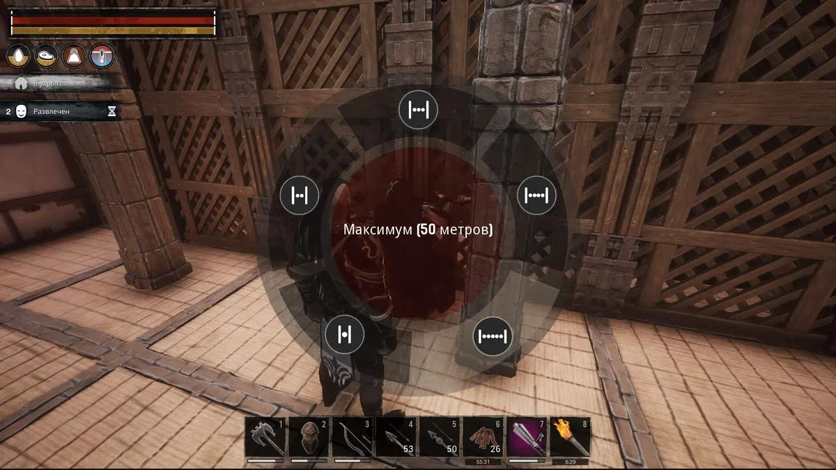 Еще одной полезной функцией Вступления в Бой станет возможность ограничения дальности погони раба. Наверное, самая полезная функция. Как раз недавно был случай, когда мне удалось угнать одного из сильнейших рабов другого игрока с его базы на свою, и спокойненько забить его на своей территории с помощью своих рабов. Получив при этом комплект брони Богоборца, совершенно бесплатно.