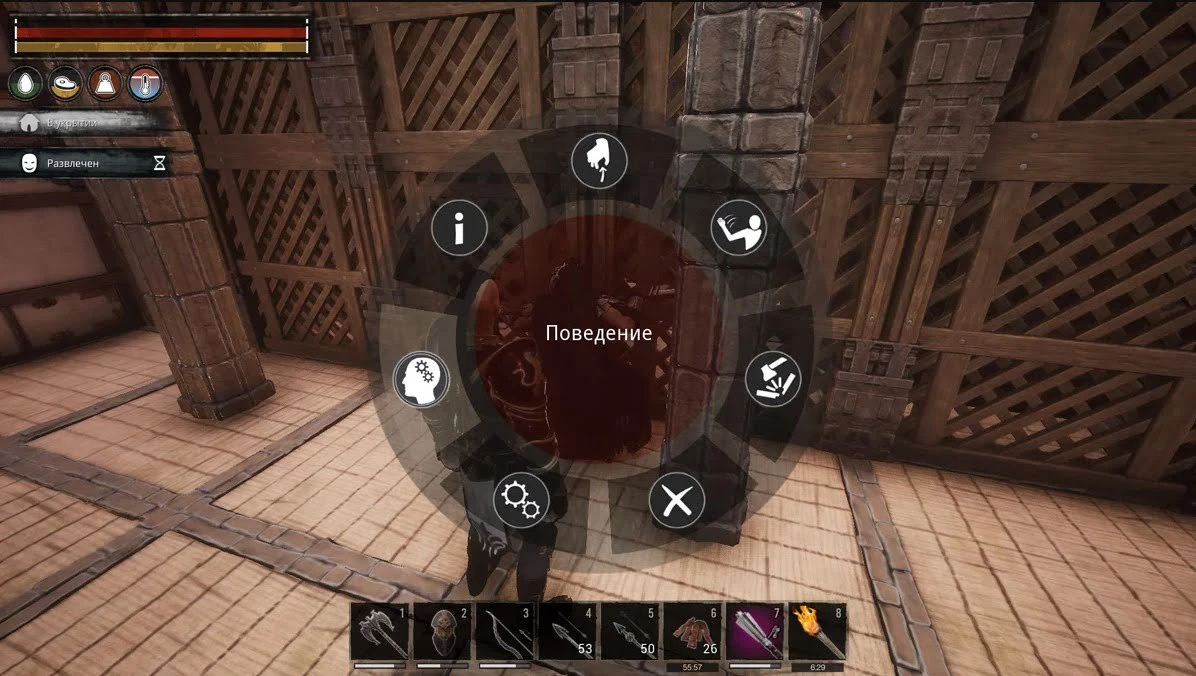 Теперь у вас появилась возможность для настройки правил поведения ваших рабов, животных и монстров. Это делается новой кнопкой "Поведение" в круговом меню управления рабом, которая откроет вам доступ к настройкам раба для "Вступления в Бой" и "Тактике".