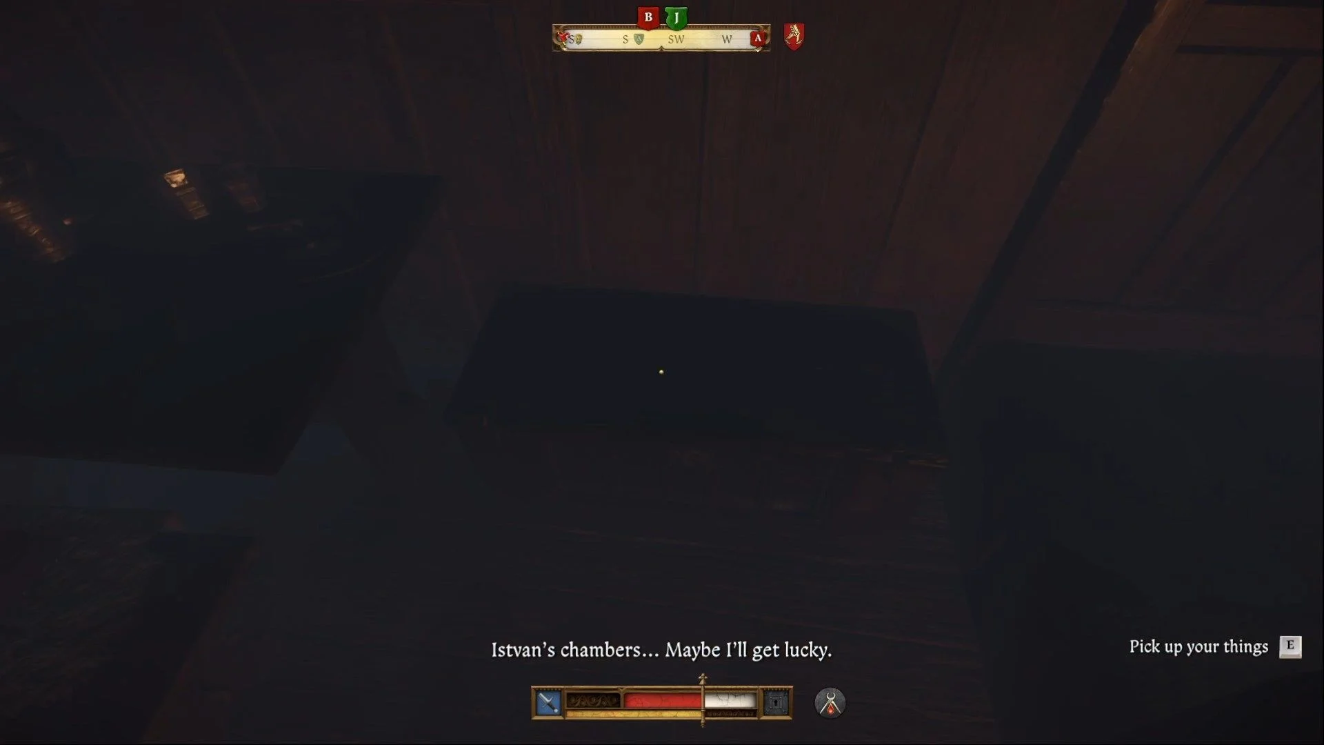 После убийства Иштвана поднимитесь в его спальню. В одном из сундуков вы обнаружите своё снаряжение (приготовьтесь избавиться от лишних предметов или выпить зелье, повышающее силу, чтобы не перегрузить персонажа) и главный ключ от замка. Вы можете осмотреть оставшиеся сундуки и полки в комнате, но ничего полезного там не найдёте, поэтому двигайтесь дальше. Спуститесь в комнату писца и проведите аналогичный осмотр. Здесь также не будет приказов.