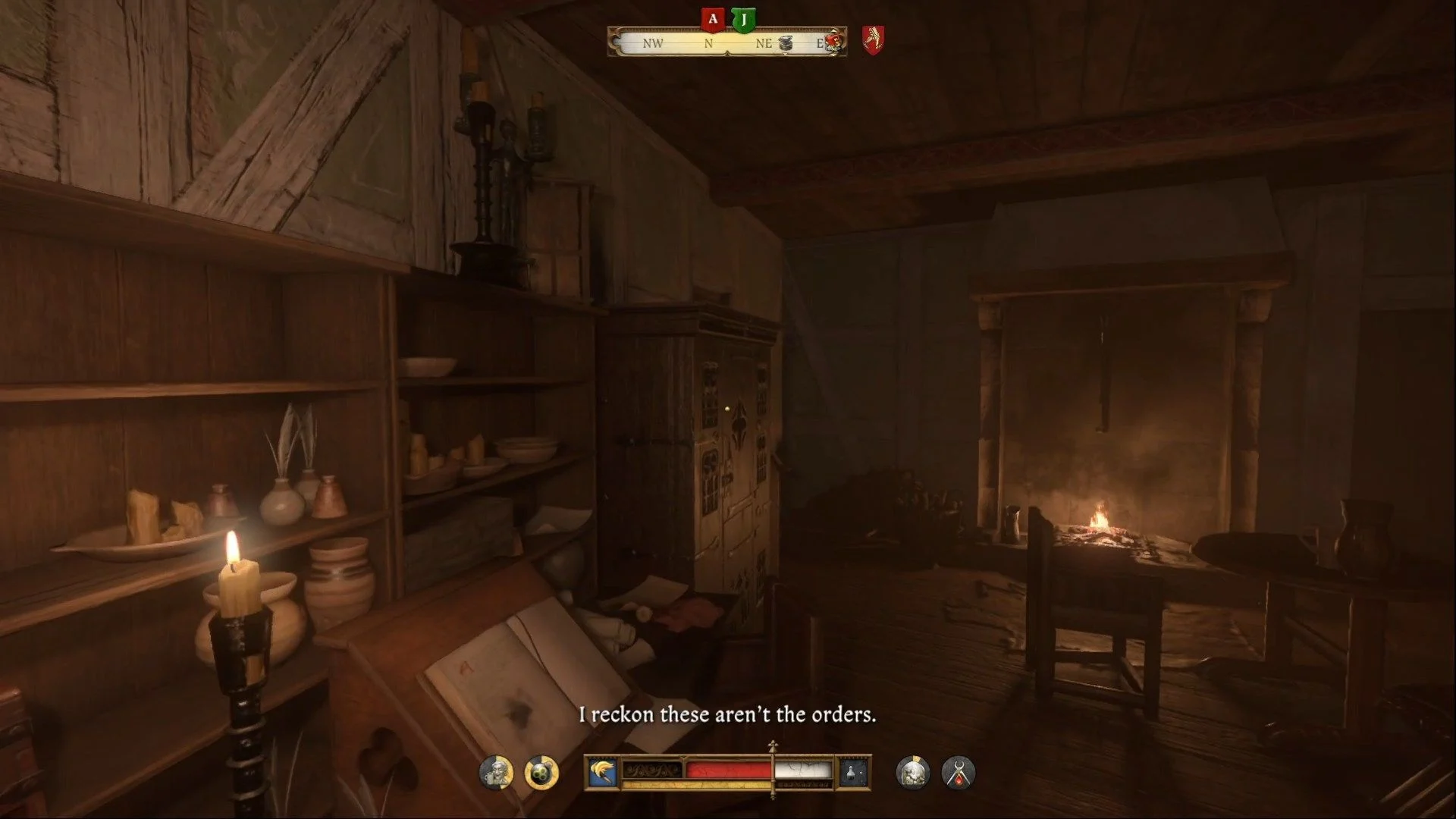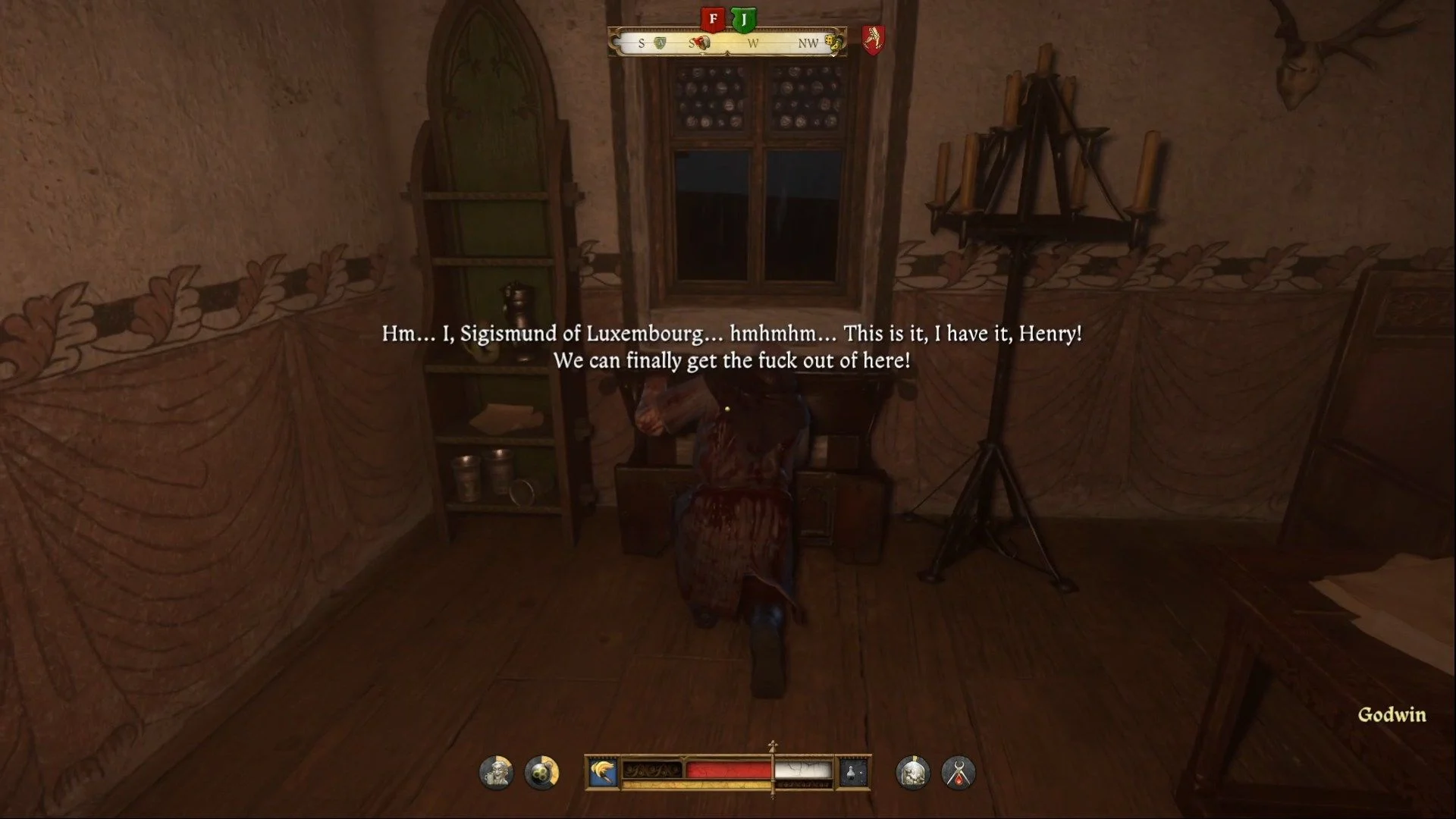 Генри предполагает, что приказы находятся в помещениях Бергова. Вернитесь в Девичью башню, следуя предыдущим маршрутом. У двери комнаты Бергова вас встретит Годвин — откройте ему дверь с помощью главного ключа. Вместе осмотрите комнату, и Годвин в конечном итоге найдёт документы в одном из сундуков. Поговорите с ним, когда будете готовы покинуть замок.