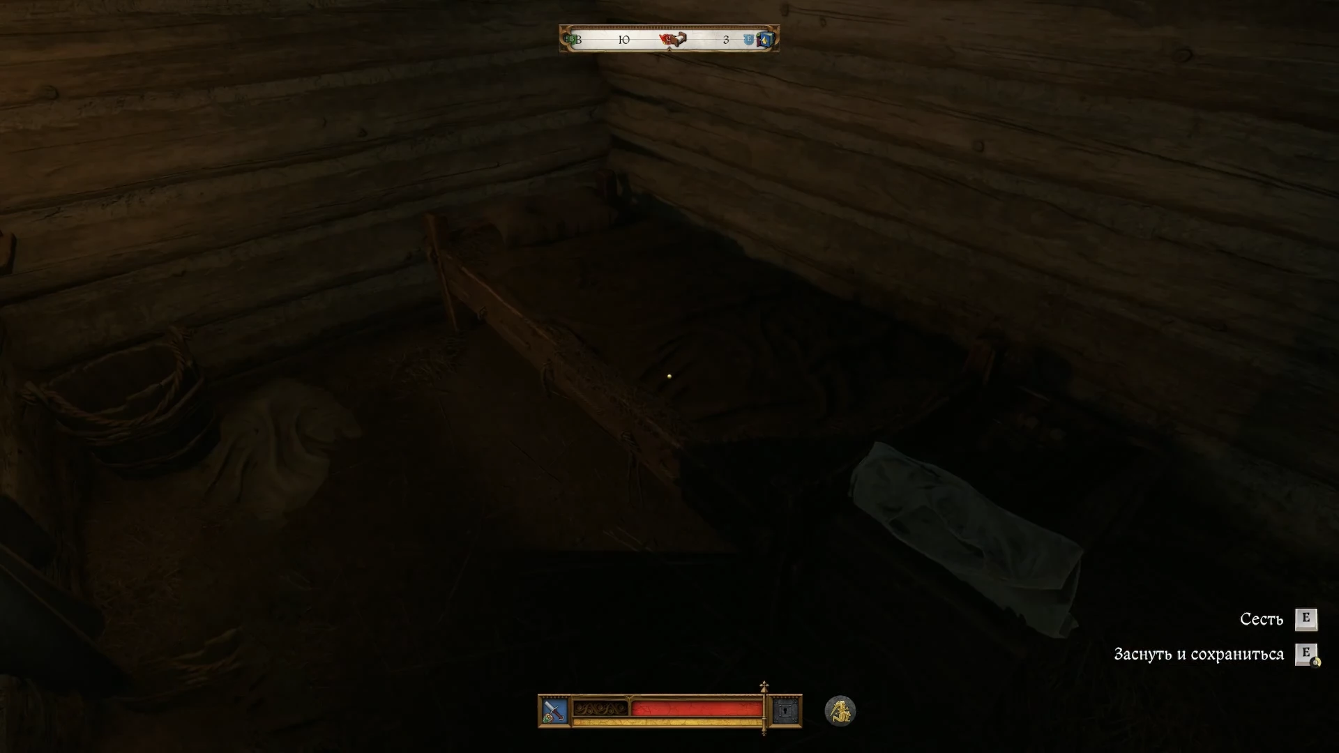 В Богемии даже в условиях вечного лета вы не сможете спать где попало, включая чужие кровати. Наличие кнопки «Спать» не гарантирует безопасности, так как вас могут разбудить недовольные хозяева. Спокойный сон возможен только в том месте, где вы видите опцию «Заснуть и сохраниться».