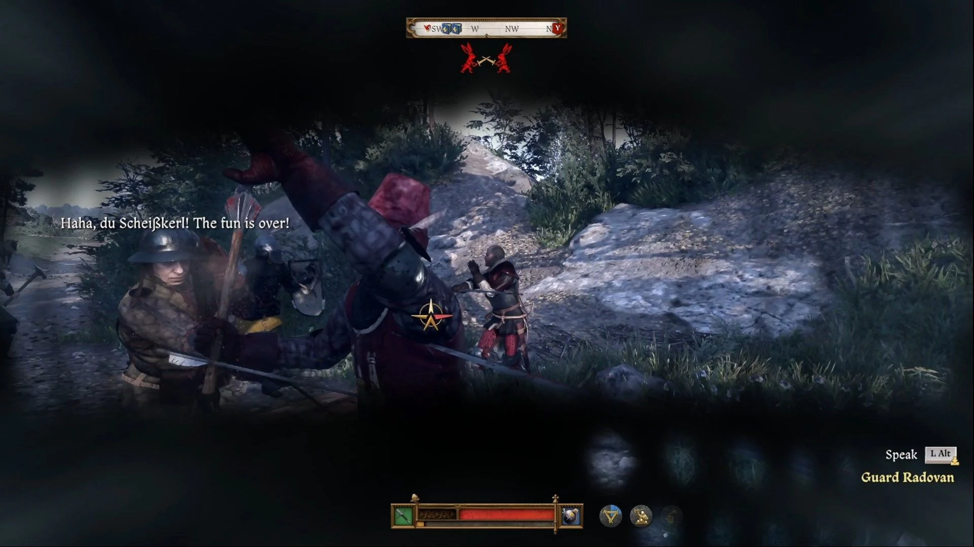Начните с разговора с Жижкой и вашими друзьями в Чертовом логове. Индржиху поручат записаться в армию Сигизмунда в ближайшем лагере. Направляйтесь туда, избегая деревню Опатовиц, так как местные жители не любят Индржиха. У главных ворот поговорите со стражником. Вам потребуется подкупить его за 500 грошей, чтобы попасть в лагерь.