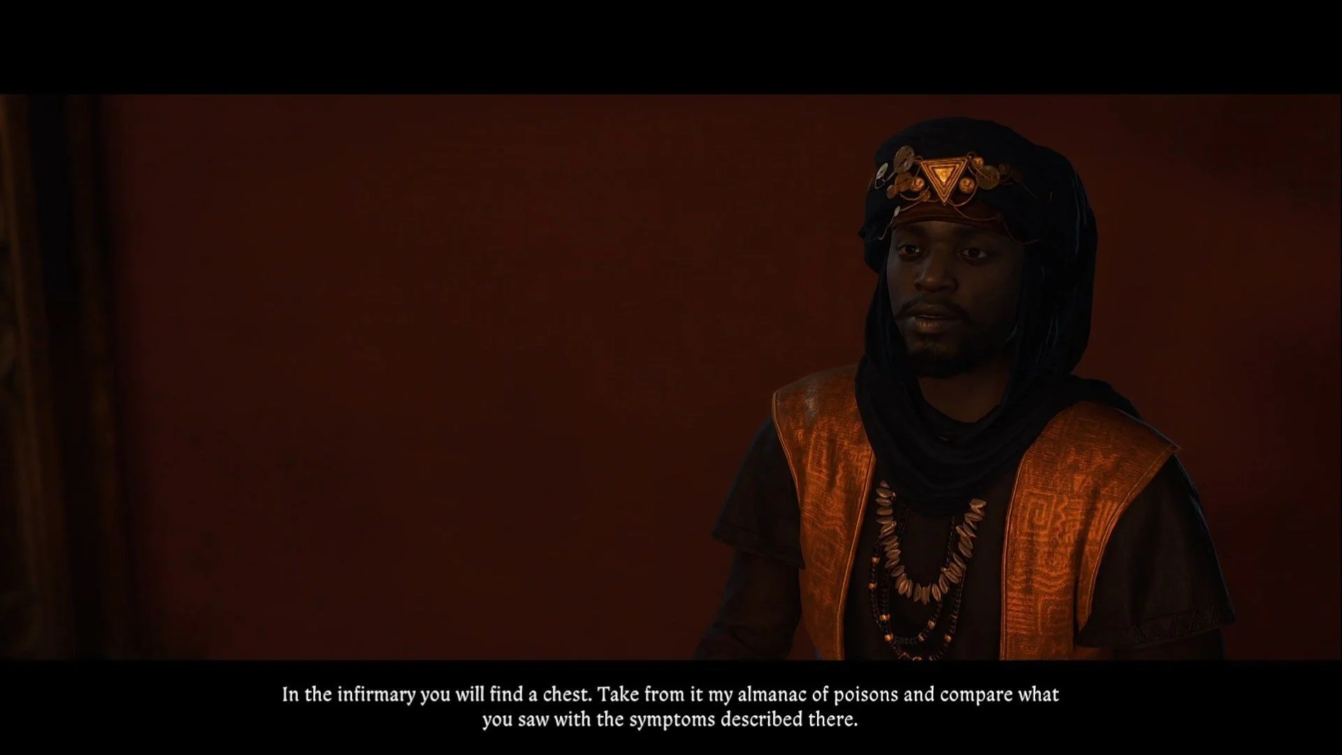 После осмотра места преступления поговорите с Кацем, чтобы сообщить о находках. В медицинской палатке станет известно о том, что Чертана отравили — Грозав обвинит Мусу. Вам необходимо доказать, что доктор не виновен. Начните с палатки Мусы. Можно отвлечь охранника разными способами, или просто прокрасться мимо. Муса попросит проверить тело жертвы и сравнить симптомы с книгой о ядах.