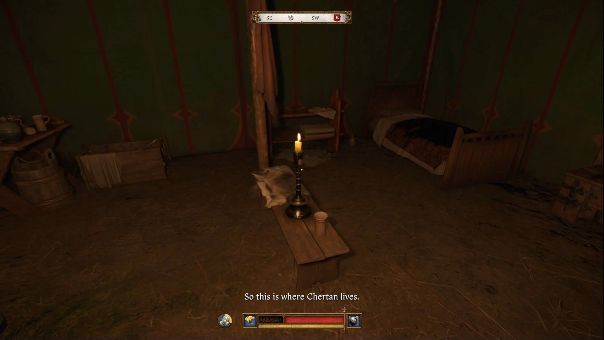 После партии в кости с Мусой и Кацем (вы можете сыграть с Кацем за 300 грошей), вас позовут выйти из палатки. Командир Чертан был убит ножом. Генри получит задание провести расследование. Вам нужно проверить эти места: