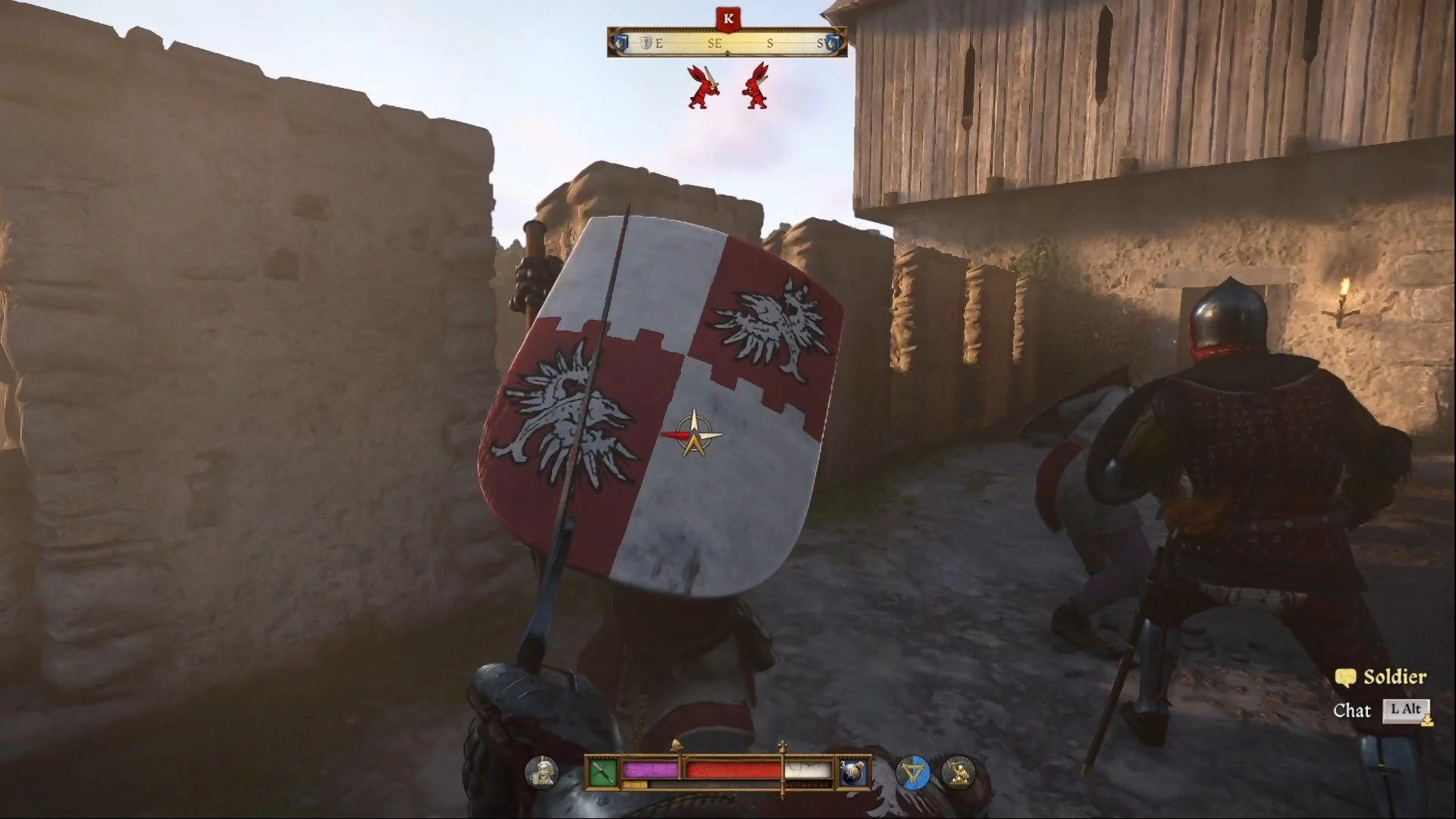 Когда тележка будет на месте, смотрите кат-сцену. Выстрел из пушки разрушит внутреннюю стену, и вы сможете зайти во внутренний двор. Уничтожьте оставшихся солдат Бургова. После сражения поднимитесь на башню с Гансом и Жижкой, чтобы поговорить с Бурговым.