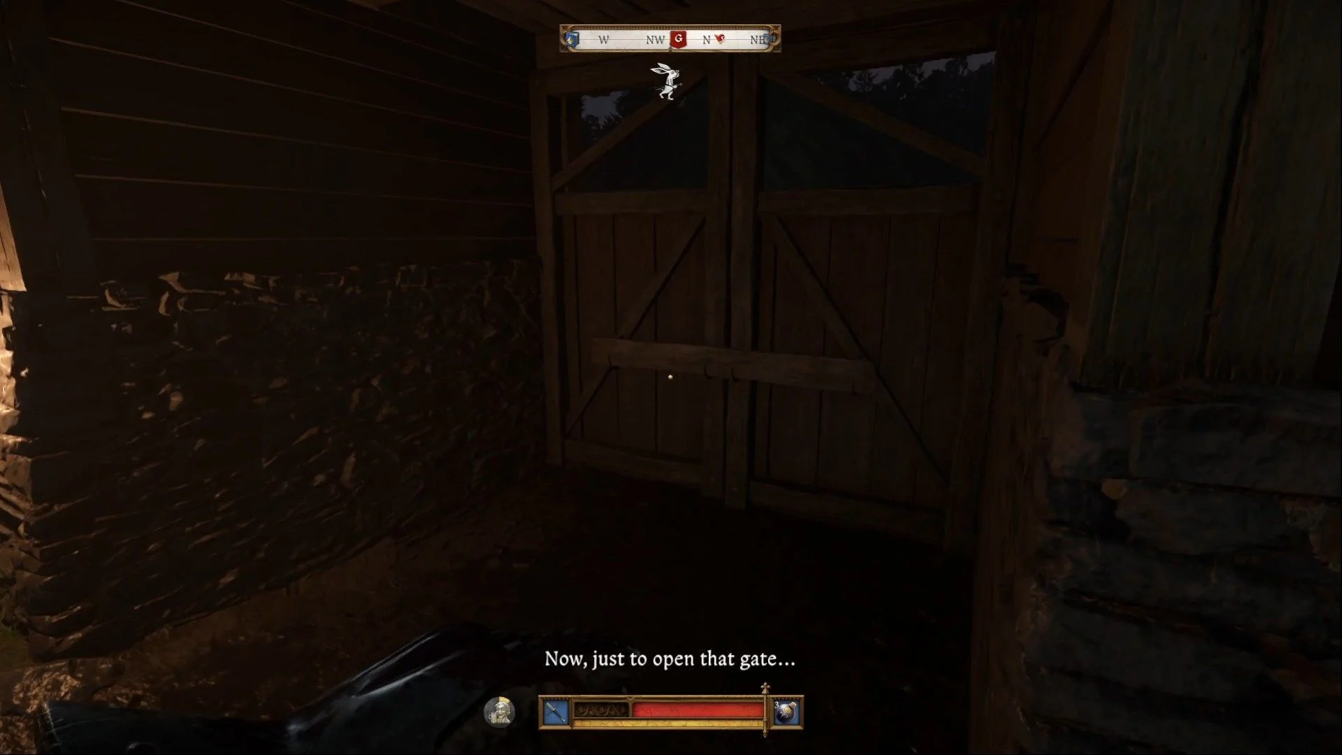 Двигайтесь к лестнице во двор. Уберите охранника, который повернулся к вам спиной, бросив камень для отвлечения, а после подкрадитесь к нему и откройте главные ворота.