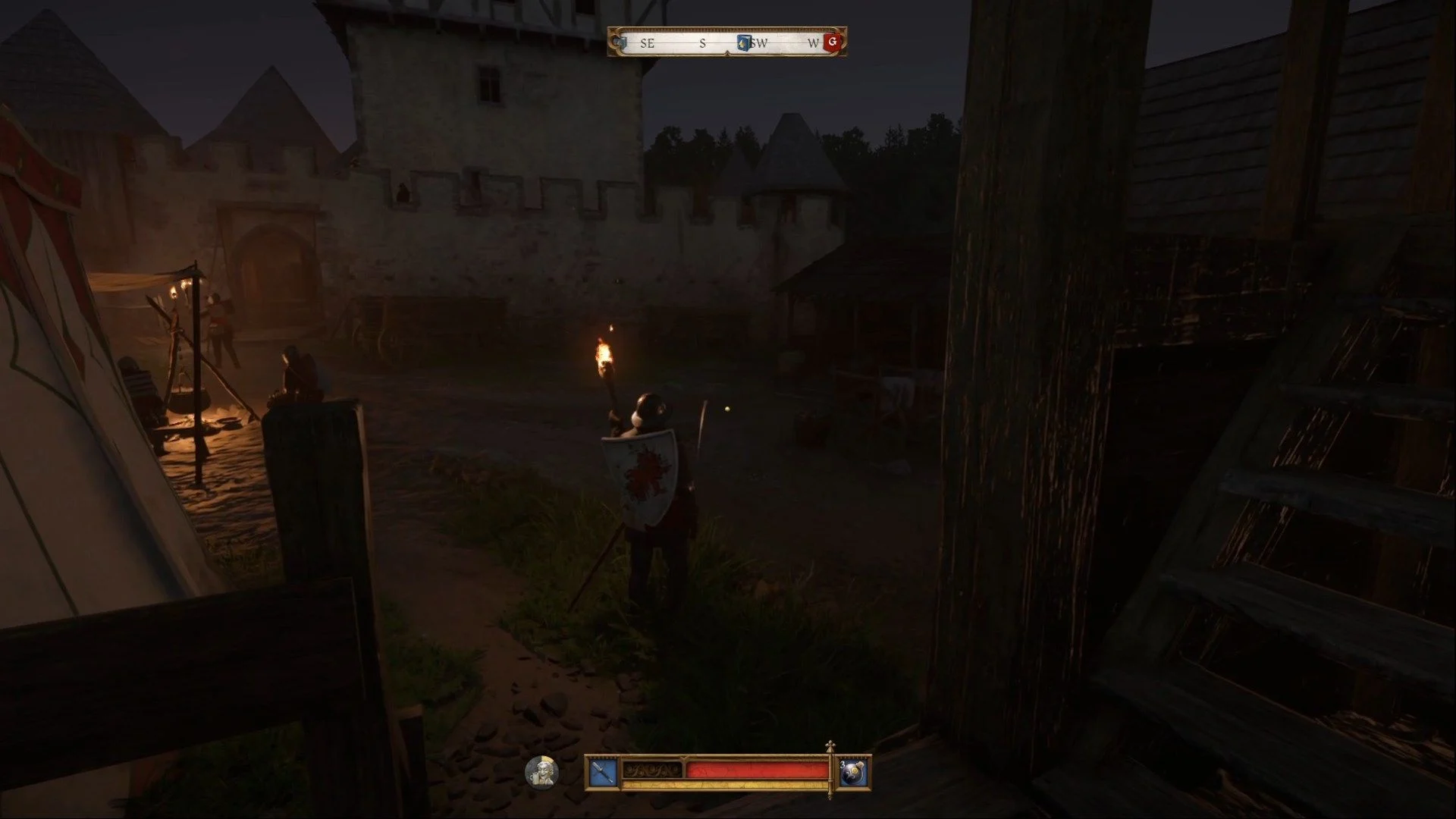 После выбора следуйте за Самуэлем, который несет лестницу, и поднимайтесь на стены крепости.