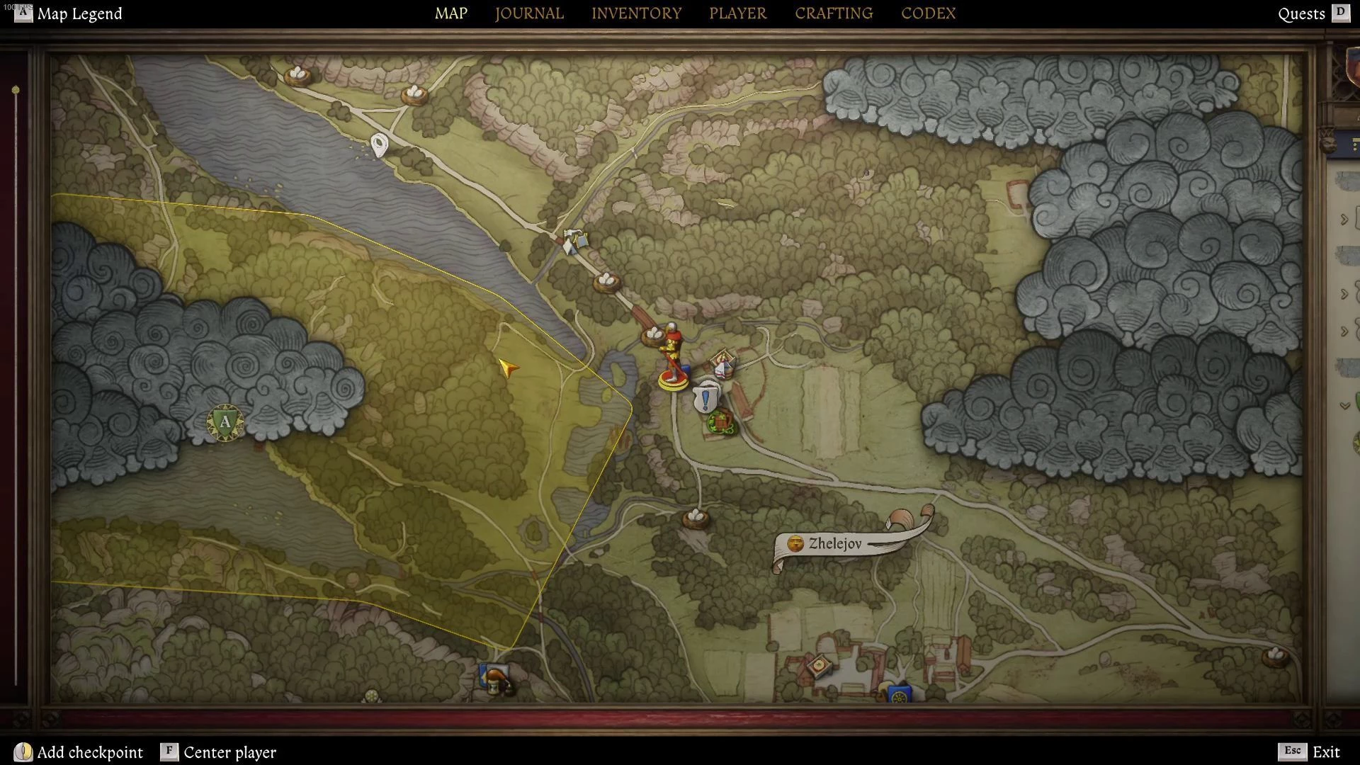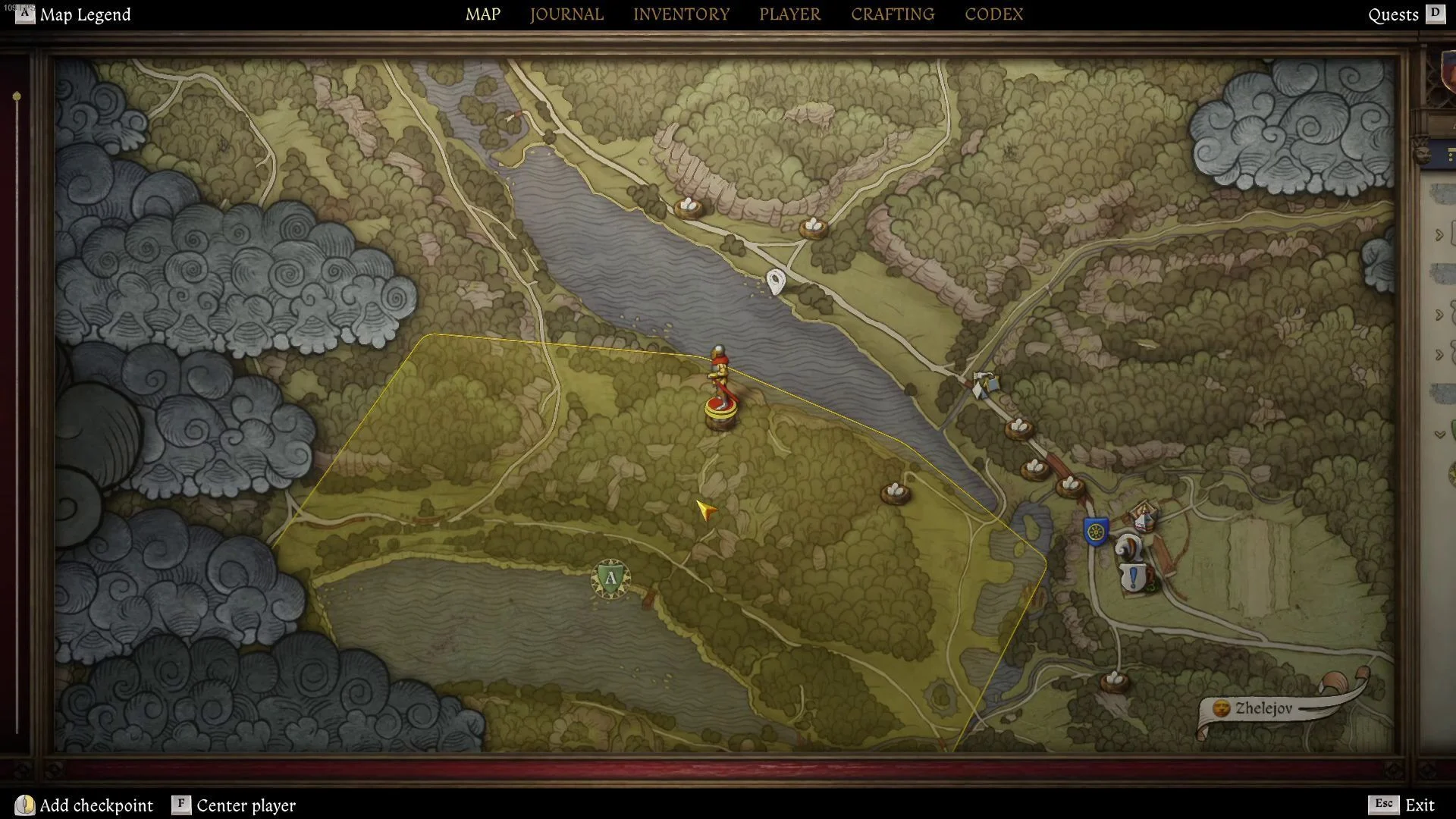 - Направляйтесь к постоялому двору «Желеёв Вагончик», затем переходите деревянный мост, который находится поблизости. После того как пересечете мост, сверните налево на тропинку. Она приведет вас к обширной пойме.