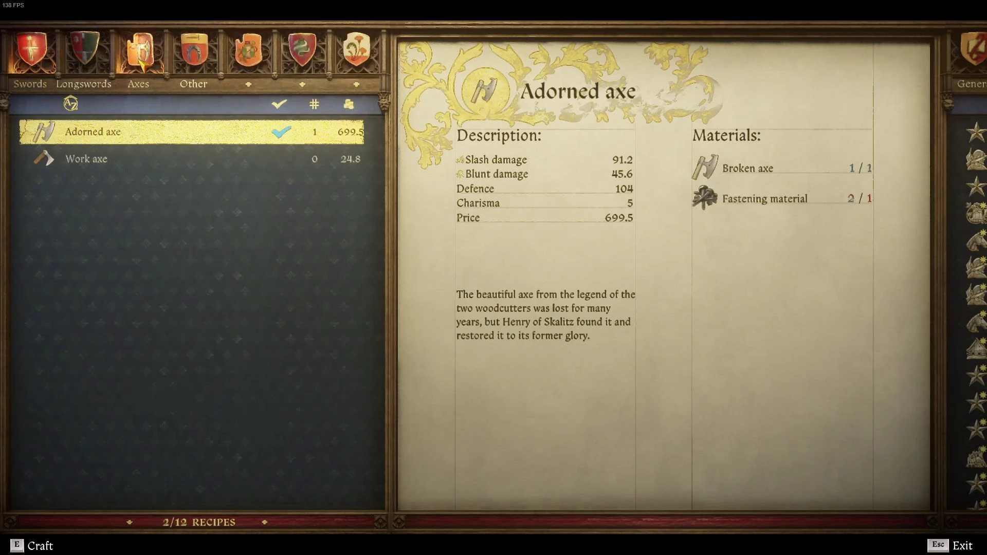 Чтобы восстановить топор, отправляйтесь в Тахов к кузнице. Вам понадобятся крепежные материалы, которые можно купить у кузнеца Радована.