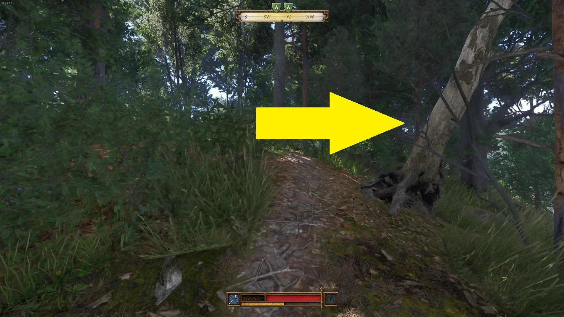 - Тропа приведёт вас к вершине холма, где могила будет находиться справа от путеводной дорожки, рядом с деревом с голыми корнями. Место также можно определить по тому, что оно находится чуть севернее значка гнезда на карте.