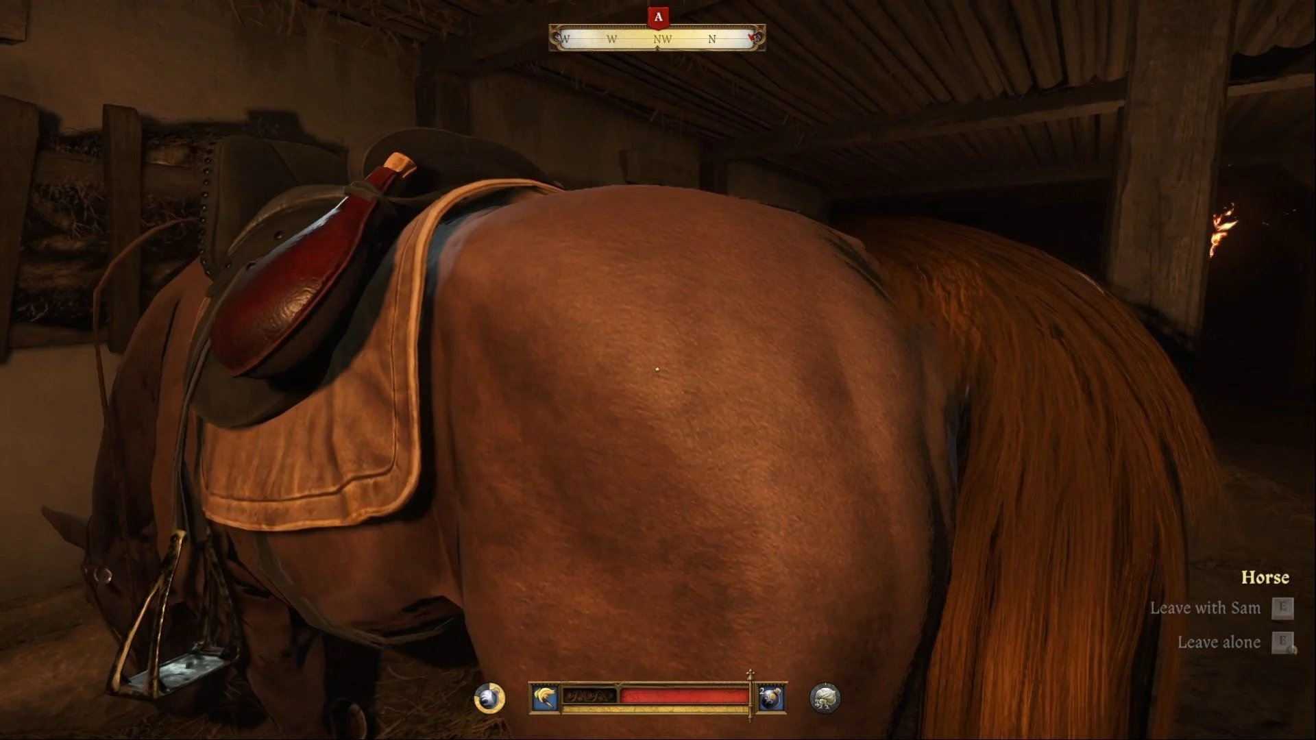 Лошади находятся в конюшне на юго-западе деревни, недалеко от окраины квестовой зоны. Взаимодействуйте с одной из лошадей, чтобы покинуть лагерь, либо в одиночку, либо с Самуэлем. Это завершит квест.