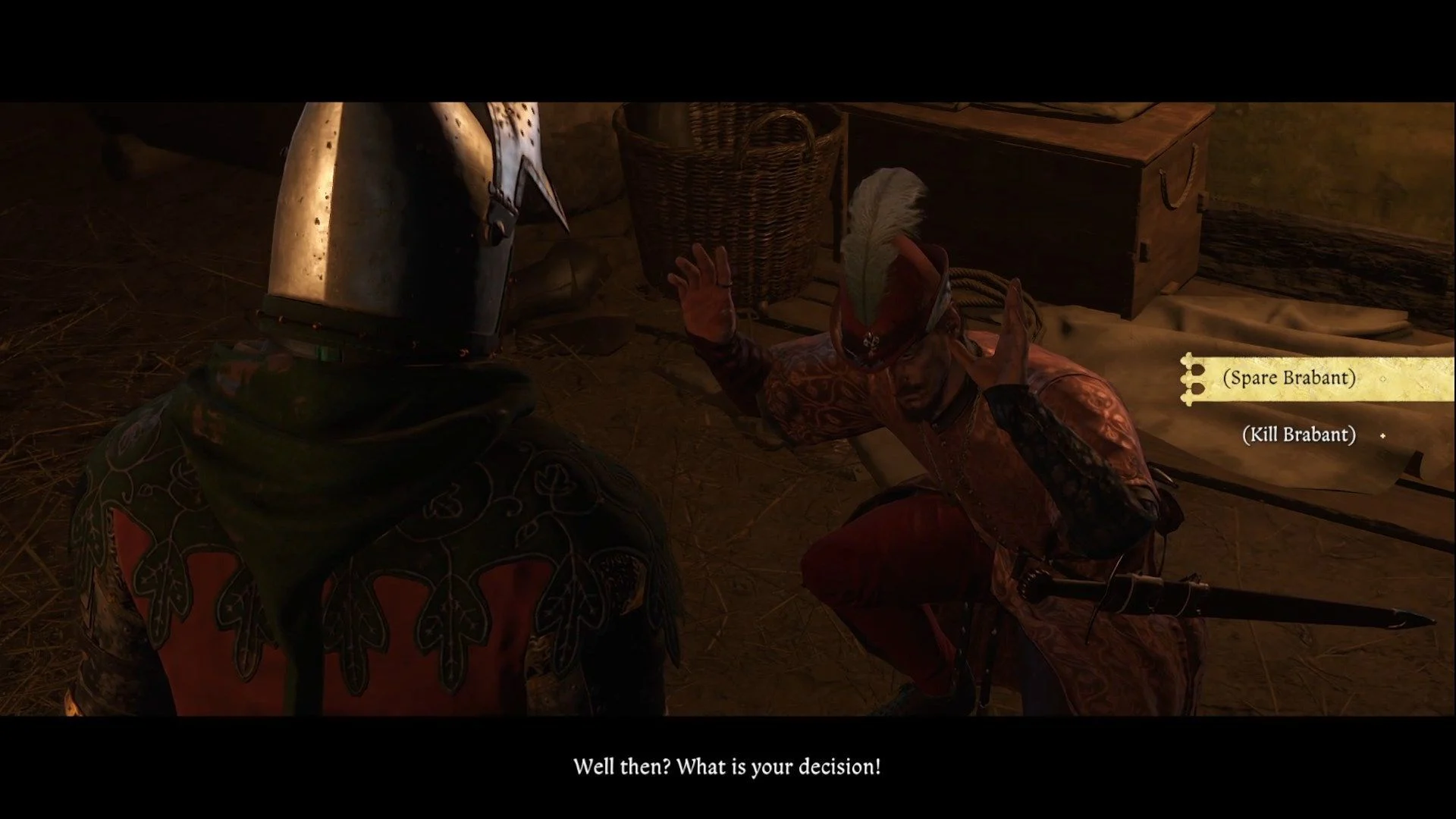 На чердаке есть отверстие, через которое можно спрыгнуть на первый этаж и напасть на Брабанта. Это будет неожиданно для него, ведь он не вооружен и не станет серьезным соперником. В конце вам нужно решить, что делать с предателем – убить его или пощадить. Если вы убьете Брабанта, родители Генри будут недовольны. Если пощадите, он позовет на помощь. Вы можете убить его за это, но он поднимет тревогу, и это усложнит оставшуюся часть квеста.