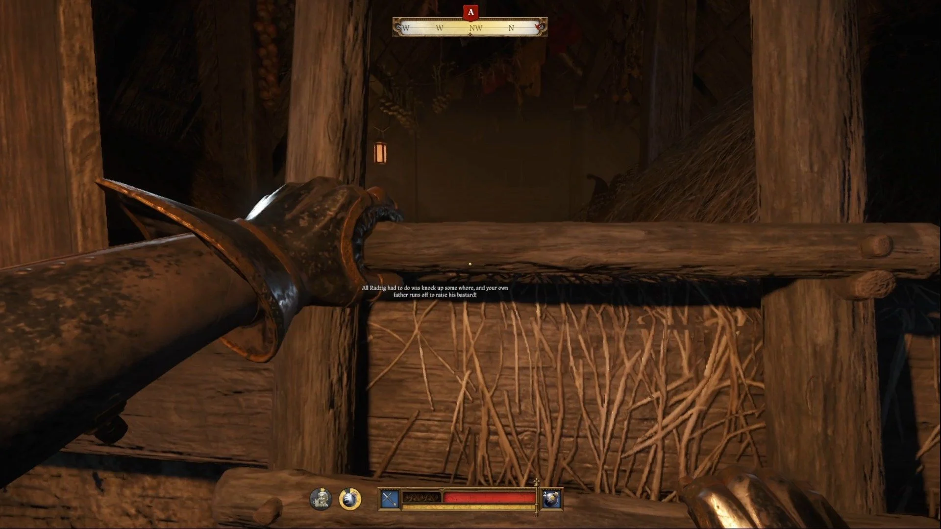Самуэля держат в запертом амбаре на юго-западе деревни, рядом с таверной. Подойдя, вы услышите знакомый голос – Брабант допрашивает его. Обратите внимание на лестницу, прислоненную к боковой стороне амбара, она ведет на чердак. Поднимитесь по ней.