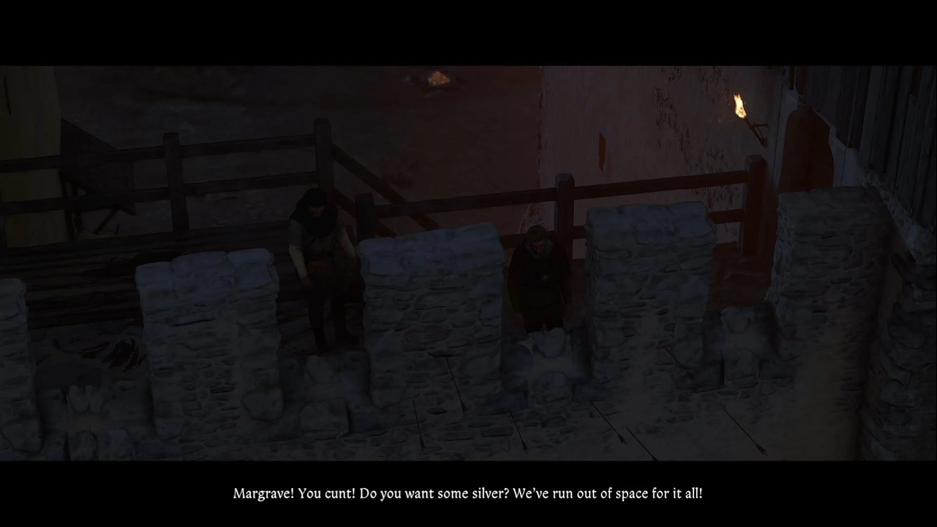 Миссия начинается со сцены, где Годвин выпивает с Гансом. Насладитесь этими спокойными мгновениями, поскольку после попойки вас разбудят нападающие пражане. Спуститесь вниз, и от Питера из Писека вы узнаете, что у пражан есть требушеты. Выйдите во двор, посмотрите кат-сцену и присоединяйтесь к сражению.