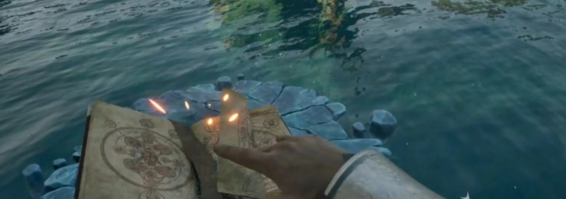 Опытные игроки всегда таскают с собой базовый гримуар, чтобы замораживать воду и взбираться на платформы, куда иначе не попасть. Механика тут простая: выбираешь ледяное заклинание из книги, целишься в воду и колдуешь. Ледяной блок держится несколько секунд – этого хватит, чтобы запрыгнуть и собрать сокровища, редкое снаряжение или ресурсы для апгрейда оружия.