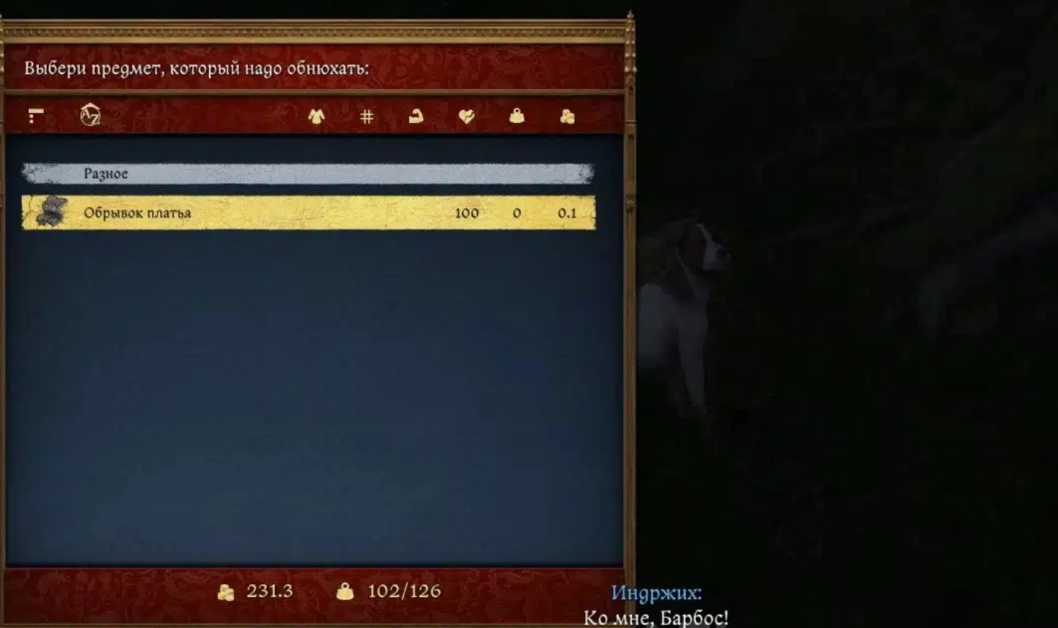 Вот тут пригодится Барбос! Дайте ему понюхать платье, и он приведет вас к Павлене.