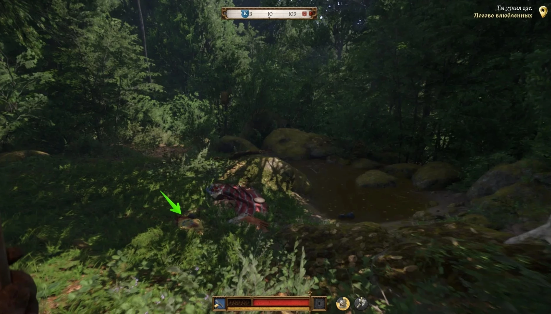 Можно допросить его, а можно сразу идти к точке на карте южнее места преступления, за ручьем.