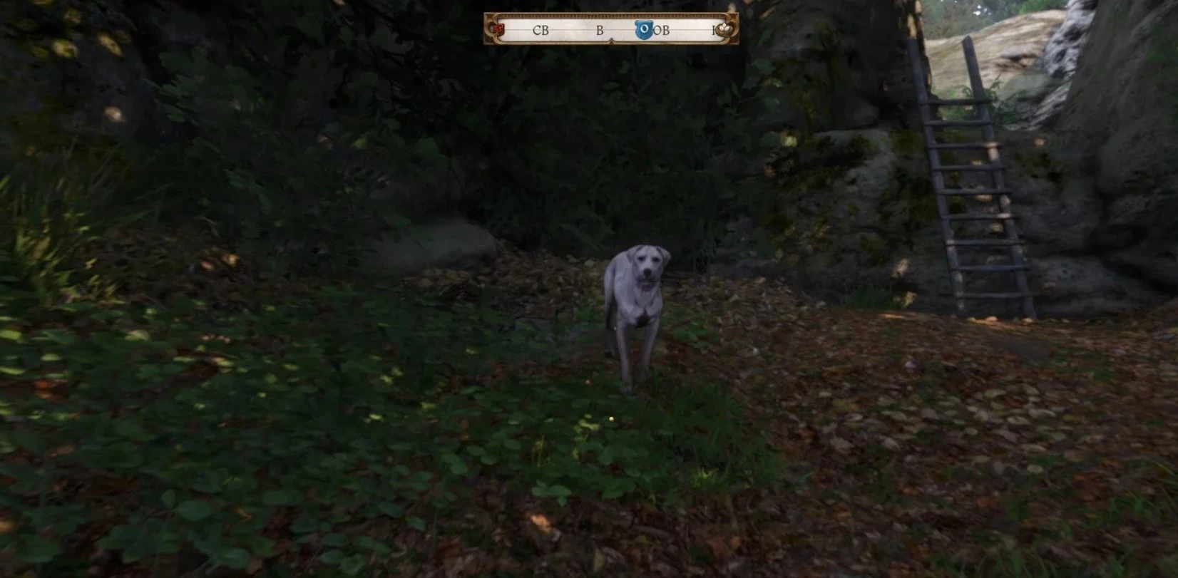Игнорируйте пса, нет смысла вступать в бой. Просто сразу поднимайтесь по лестнице.