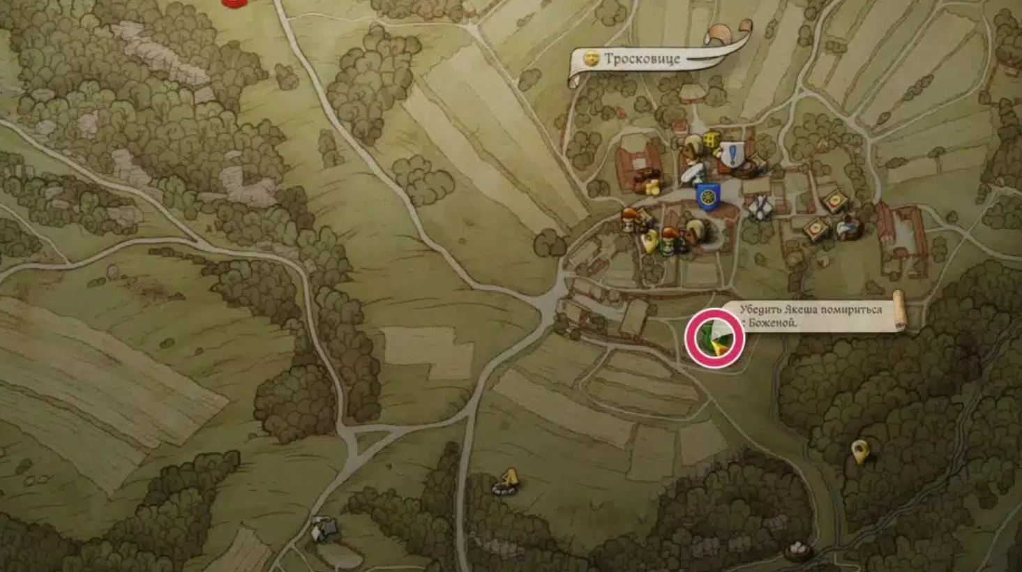 Идите к метке в лесу к югу от Тросковице. Там, у пруда, вы найдете их логово и поймете, что случилось что-то ужасное.