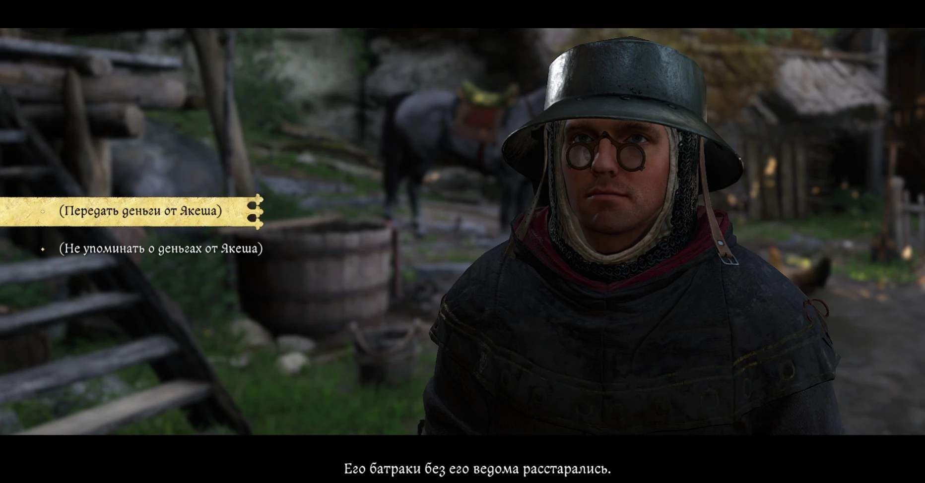Вернувшись к Божене, вы можете передать ей деньги от Якеша или умолчать об этом. Даже в случае передачи, старушка предложит вам половину (50 грошей), что весьма кстати, учитывая ваш долг в 150 грошей за ее спасение.