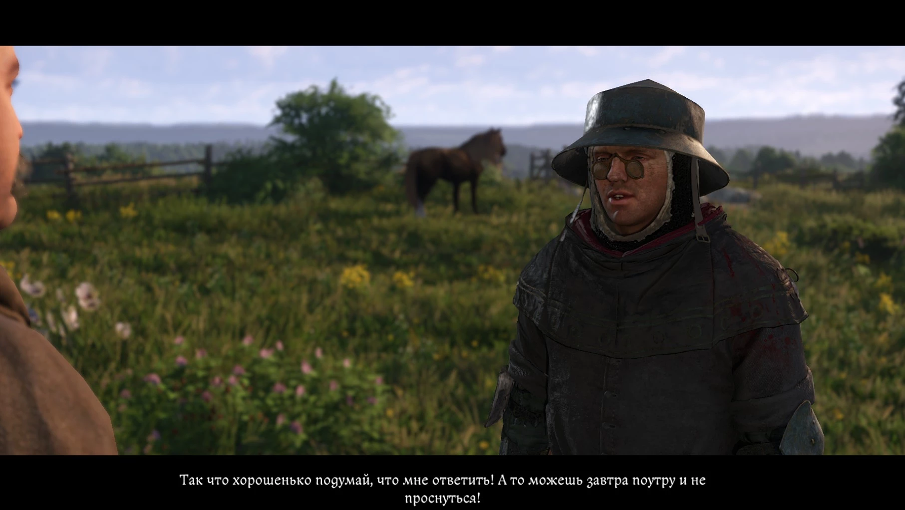 Попытка запугивания возможна, но надежнее всего – честные ответы Олдре. Например, если вы не причинили вреда его собаке у входа, он это заметит. Если же вы убили пса и его товарища Солому, лучше солгите.