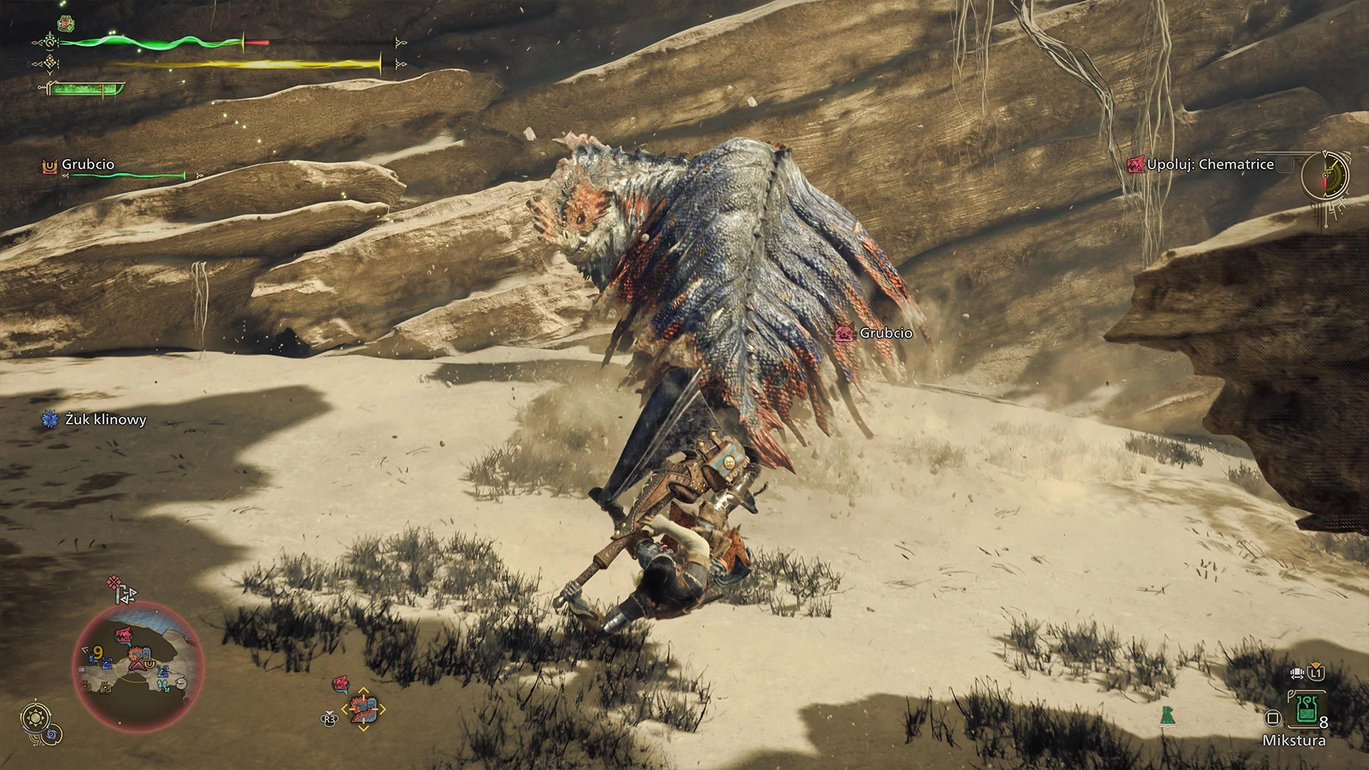 Минус Monster Hunter: Wilds — отсутствие динамики и вертикальности, как в Monster Hunter: Rise. Но это скорее дело вкуса. Мы возвращаемся к медленной боевой системе из World – охотник тяжелый, и это нужно учитывать. Меньше воздушных атак, прыжков и динамики. Темп игры медленнее, чем в Rise, но быстрее, чем в World. Зато есть секреты, которые можно призвать в бою, чтобы атаковать верхом или спрыгнуть и нанести мощный удар. Еще есть клиновидные жуки, как в Rise, но они «жестко» размещены на карте.