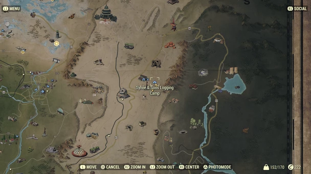 Если хотите собрать много древесины за короткое время, то нужно отправиться в лагерь Сильви и сыновей. Местоположение этого объекта показано на скриншоте ниже.