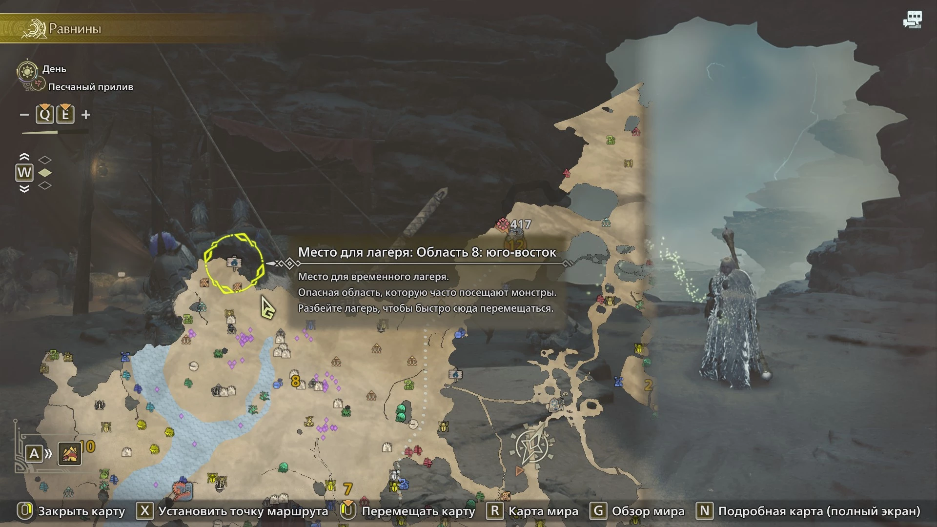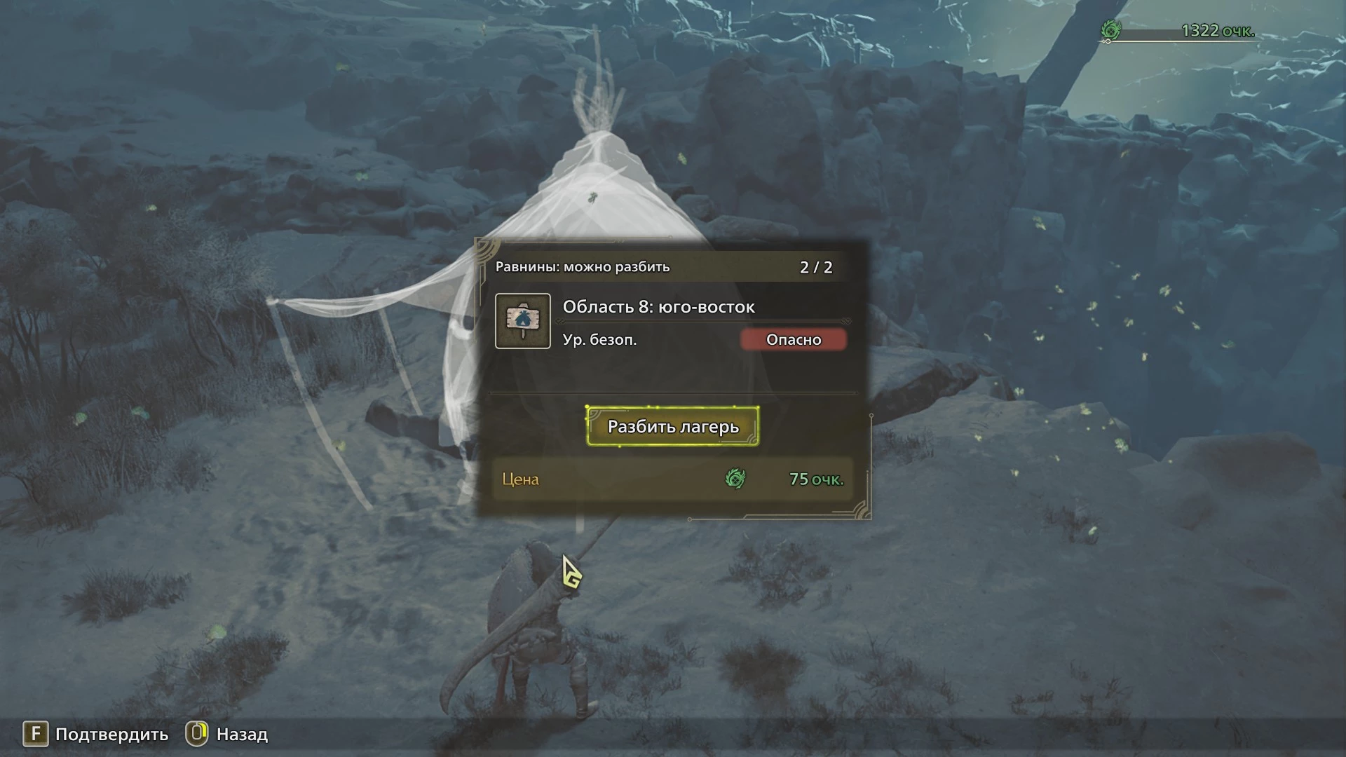 На карте каждой области есть места, где можно разбить временный лагерь. Если значок горит, значит, лагерь уже стоит, и можно телепортироваться к нему. Если значок не активен, придется сначала добраться до этого места, чтобы развернуть новый полевой лагерь.