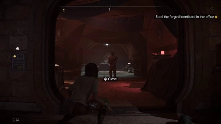 Чтобы проникнуть на склад, украдите ключ-карту у охранника в синей форме. Используйте Никса для помощи. Вход на склад находится справа от сцены.