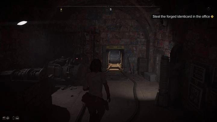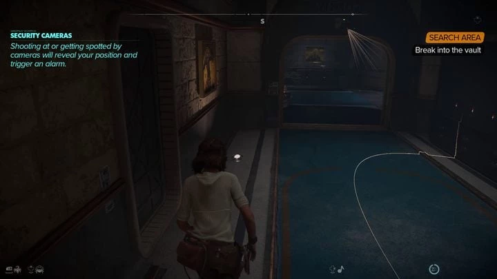 Внутри взломайте замок справа от двери, используя инструмент для взлома. Оказавшись внутри, найдите металлическую конструкцию слева и используйте крюк, нажав соответствующую кнопку. Выполните короткий подъем.