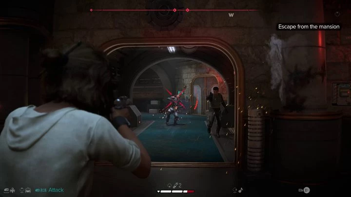 Проникни внутрь особняка. Когда увидишь красное силовое поле, блокирующее проход, используй чувства Никса, чтобы увидеть электрические провода. Пройди по ним, чтобы найти комнату с выключателем, который отключит барьер.