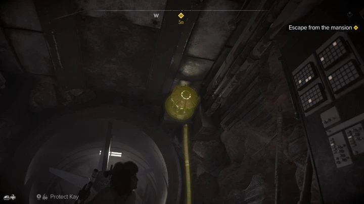 Если ты заблудился, нажми вверх на D-pad, чтобы увидеть маркер миссии прямо перед Кей. Это поможет сориентироваться.