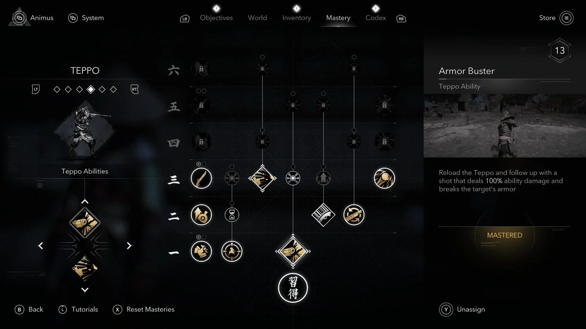 - Бронебой: Ясукэ быстро перезаряжает оружие и стреляет, пробивая броню врага. Пока идет анимация, он неуязвим, так что можно безопасно перезаряжаться в бою.